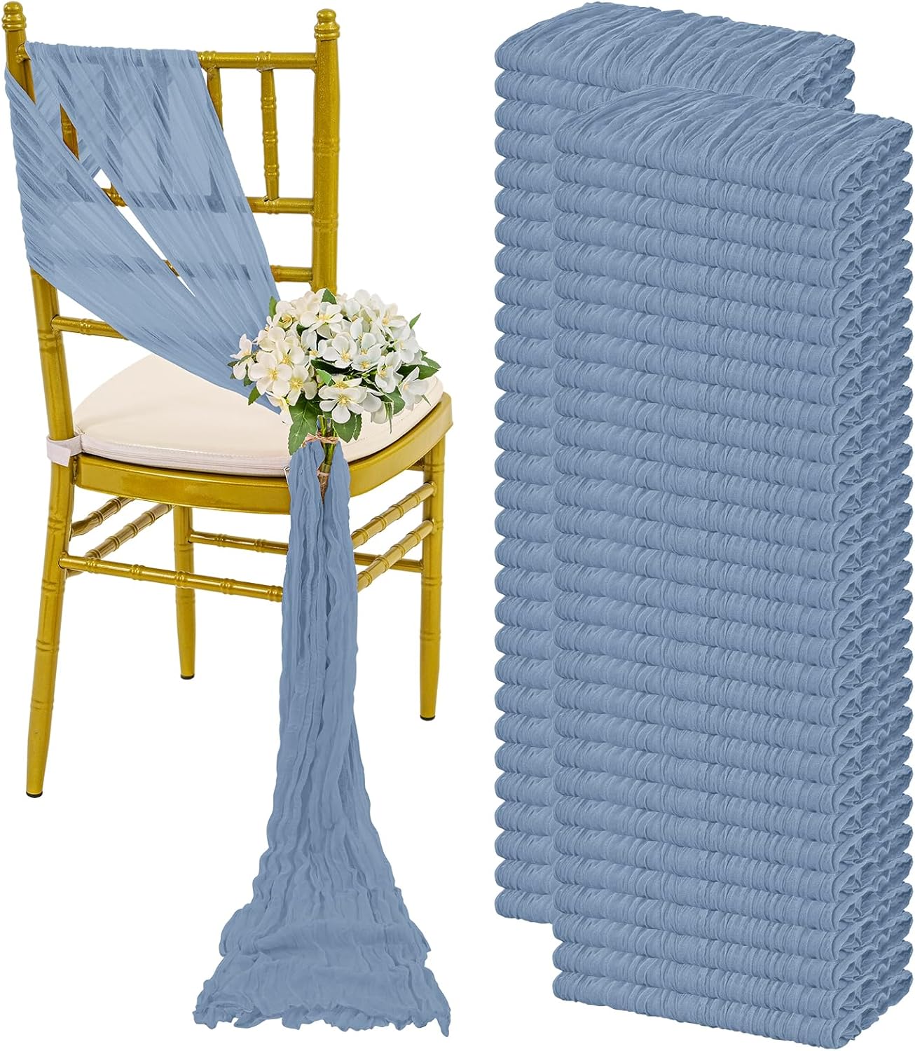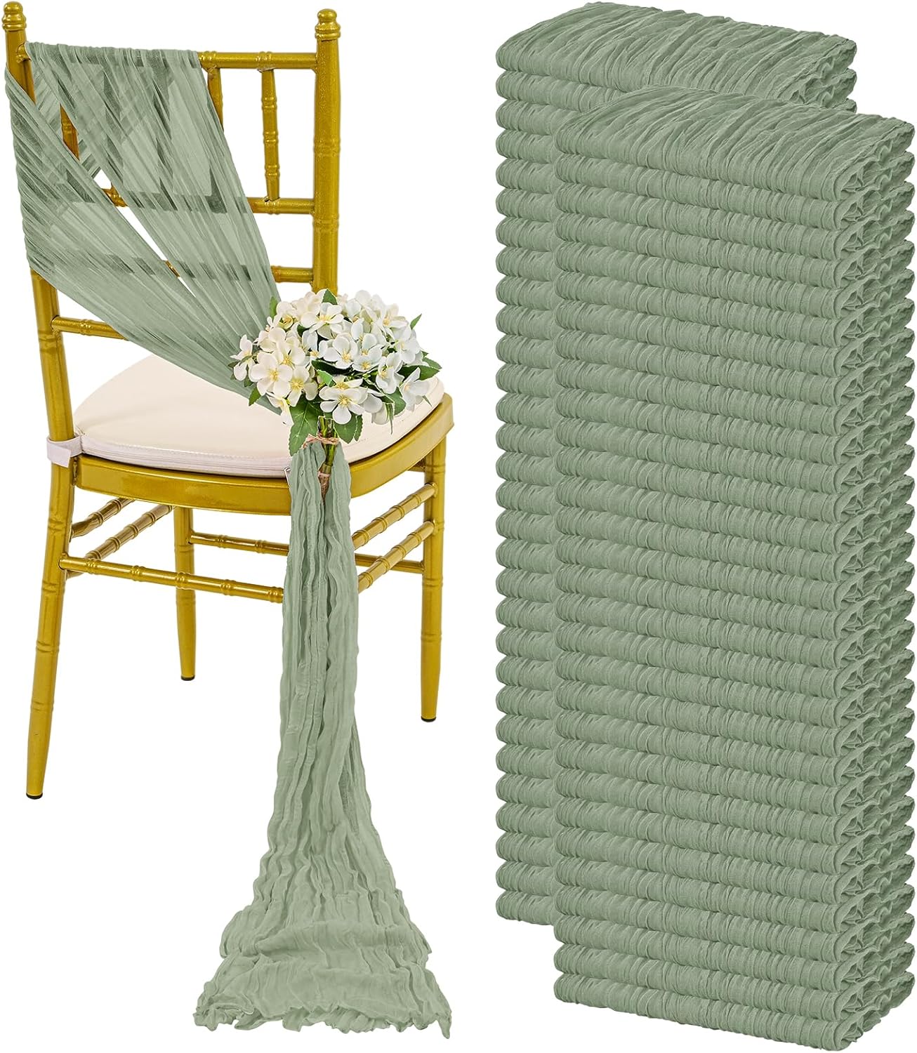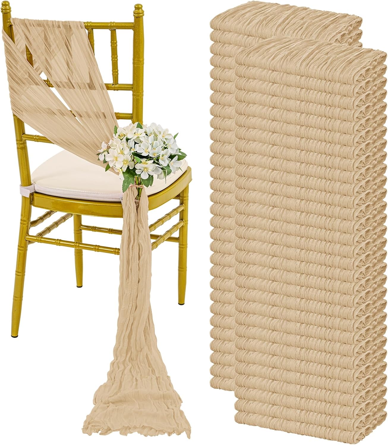 This set includes 60 pieces light yellow cheesecloth chair sashes. No flowers or ropes are included.Length: 275cm / 108inchWidth: 40cm / 16inchMaterial: Natural cheesecloth fibersYou can choose from various colors. It can also be paired with table runners and napkins of the same material.It has a soft, durable and elegant wrinkled texture.It can maintain its shape, resist fading, and can be reused in multiple occasions.The edges are sewn with matching silk threads, presenting a neat and elegant appearance.Suitable for various occasionsWeddingBanquetBirthday PartyBaby ShowerGraduation CeremonyFamily GatheringAnniversaryInstantly add a romantic and elegant atmosphere to your decoration.Tips:1. Manual measurement, there will be 1-2cm error, please understand.2. The computer screen and the mobile phone screen display different colors, and there will be color differences.
