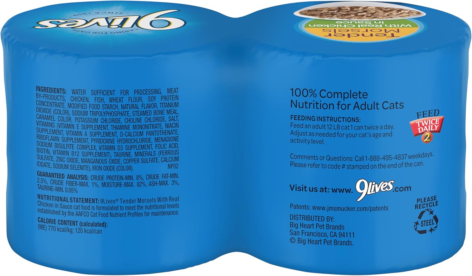 Product Description Delight you cat with every irresistible bite of 9Lives Tender Morsels With Real Beef In Sauce cat food. It’s a deliciously chunky meal of hearty slices made with real beef and seasoned sauce for the taste they love and the nutrition they need for a long, healthy life. Manufacturer Contact Information Post Consumer Brands, 20802 Kensington Blvd, Lakeville, MN 55044