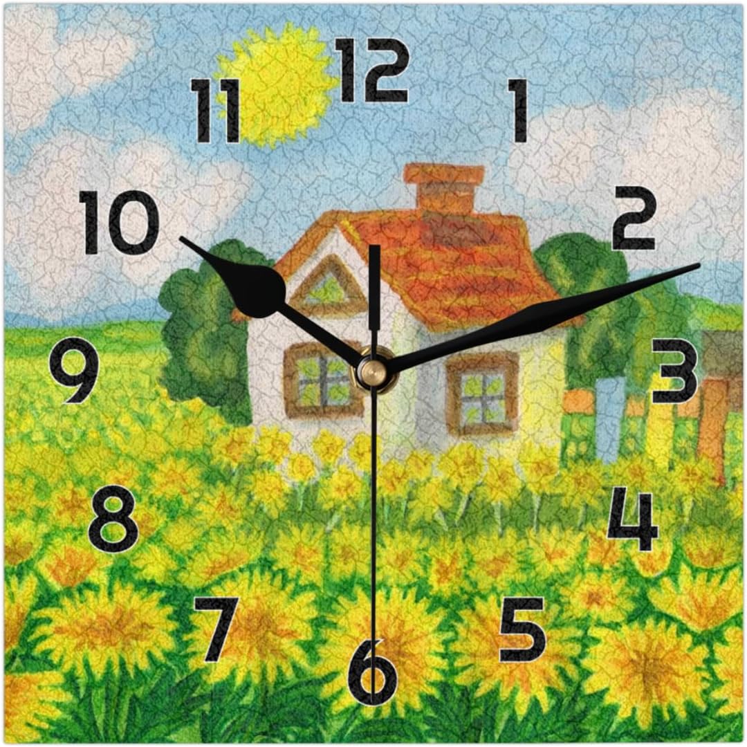 Modern Square DesignThe square wall clock features a modern rustic design that adds a touch of sophistication to any room. Its unique shape stands out as a stylish focal point on your wall. With its clean lines and modern design, this wall clock battery operated adds decorative sense to your space, making it a statement piece that complements your decor with a fashionable flair. Whether placed in a living room, bathroom, classroom, office, or bedroom, our square wall clock showcases a a timeless appeal.Precise Quartz MovementEnjoy accurate and reliable timekeeping with the precise quartz movement of our analog wall clock. It ensures that you can depend on its accuracy for your daily routines.Customer Satisfaction GuaranteeWe are committed to your satisfaction. If you have any questions or concerns about our modern rustic wall clock, please contact our customer support, and we will assist you in resolving any issues to ensure your complete satisfaction.Unique Decorative AccentThe farmhouse wall clock serves as a unique decorative accent that adds personality and visual interest to your walls or any other surface. It becomes a statement piece that contributes to the overall aesthetic of your space.Hanging Wall ClockBack slot design offers easy installation. Operated by 1*AA battery (not included).Easy-to-Read DisplayThe quite wall clock features a clear and easy-to-read dial with well-defined numerals and hands, allowing for quick and effortless time checking.Eye-Catching CenterpieceOur square wall clock can serve as a captivating centerpiece on any wall, drawing attention and becoming a focal point that sparks conversations and admiration.