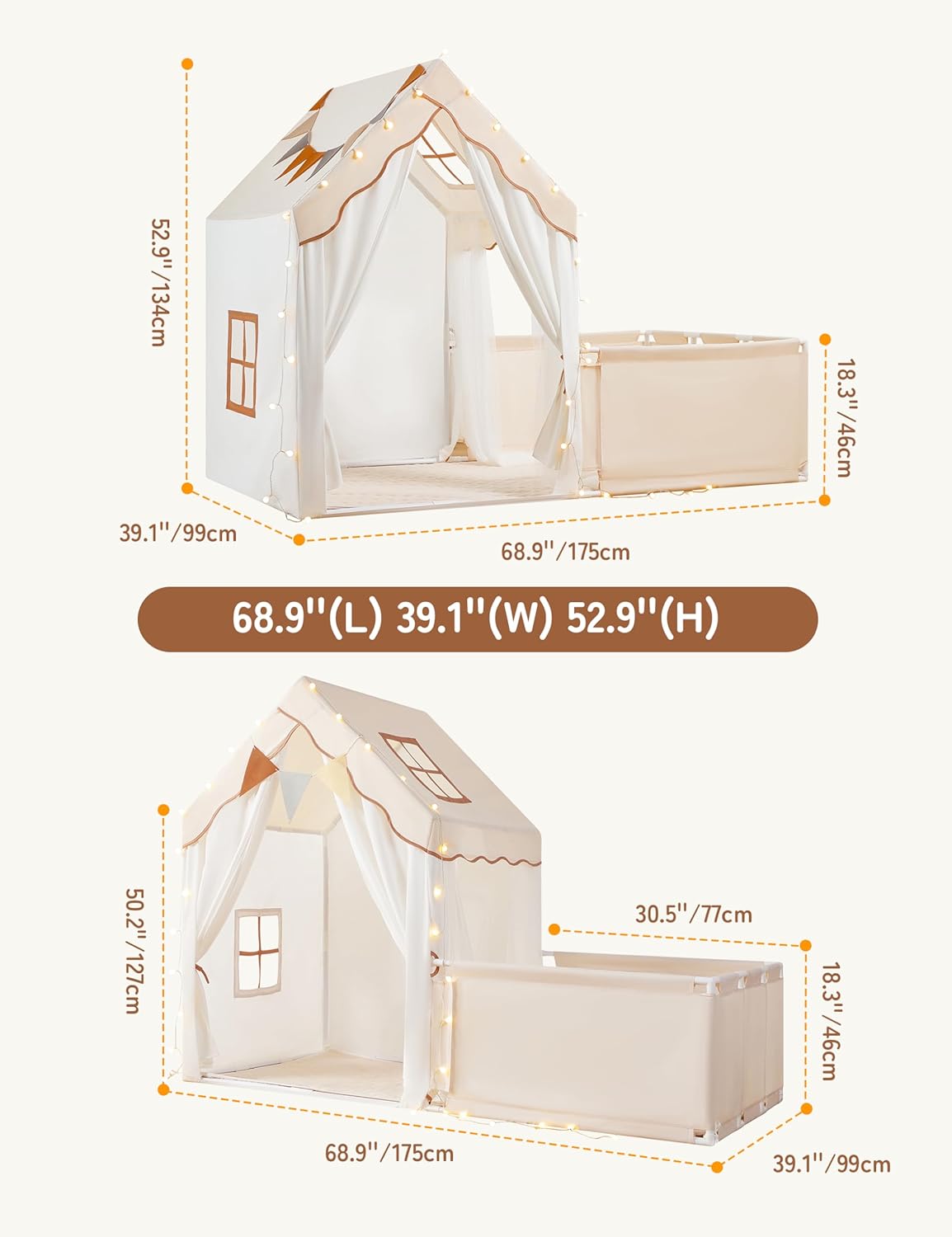 | Included Components | Kids tent, padded mat, light |