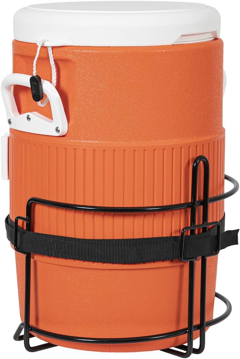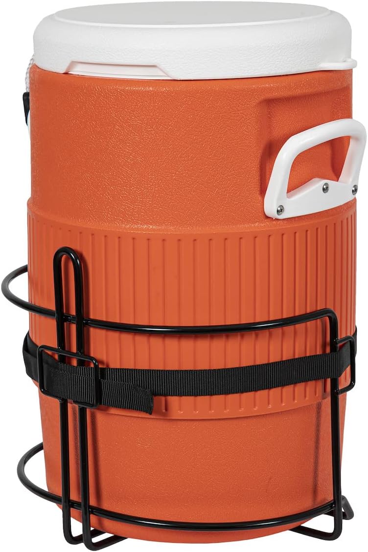 Buyers Products 5201007 5 Gallon Wire-Frame Water Cooler Rack provides easy access to drinking water while keeping the bed of your trailer clear. An adjustable strap makes it easy to keep your cooler secure regardless of brand or style (coolers sold separately). The rack features durable steel construction with a corrosion resistant black powder-coated finish. Mounting hardware is included.
