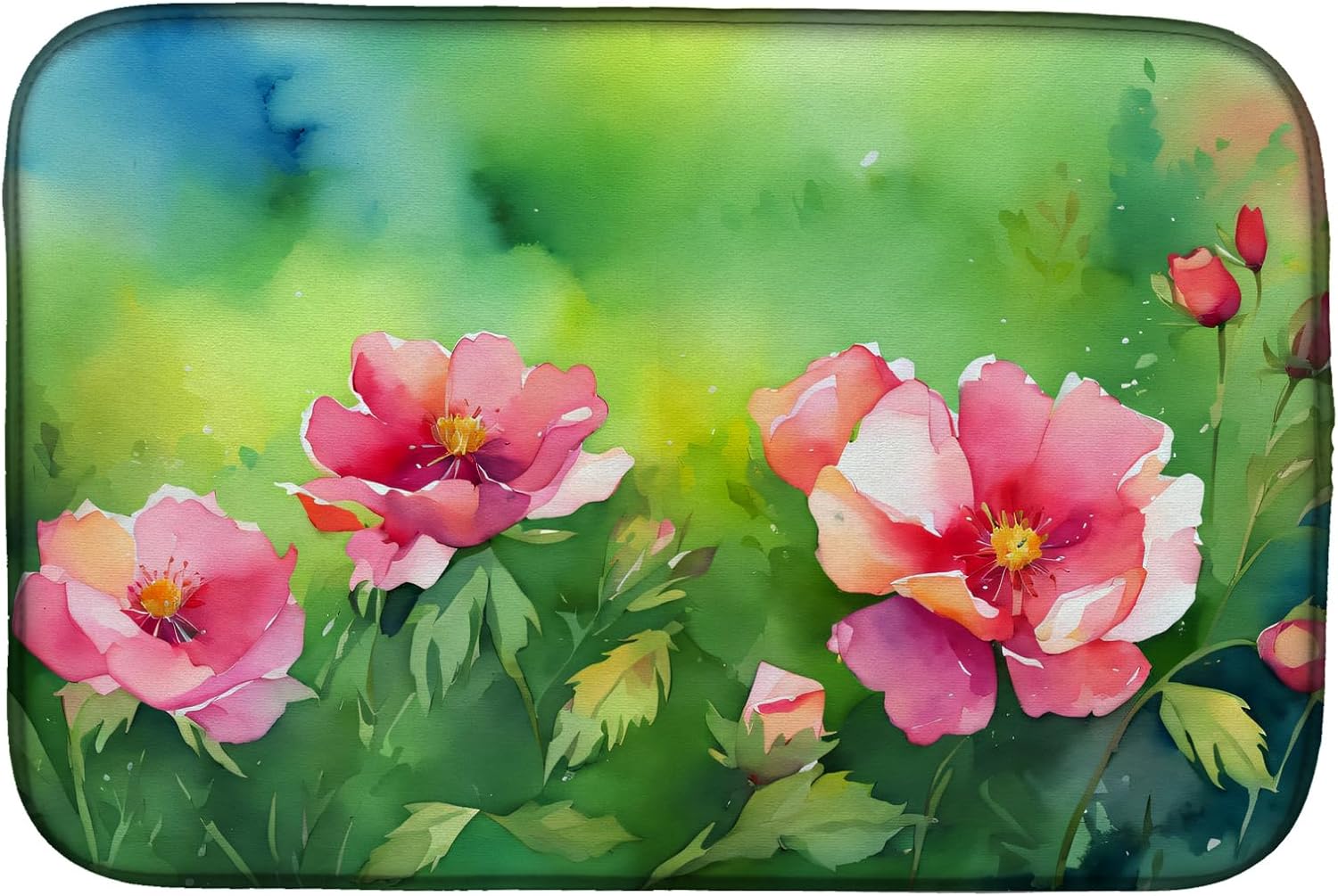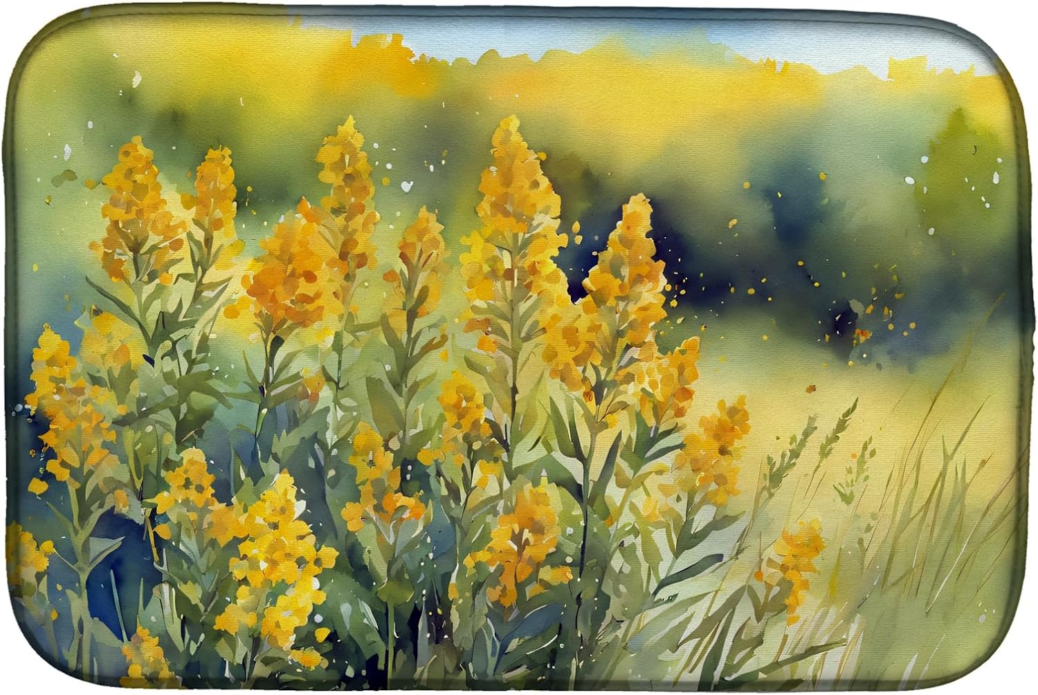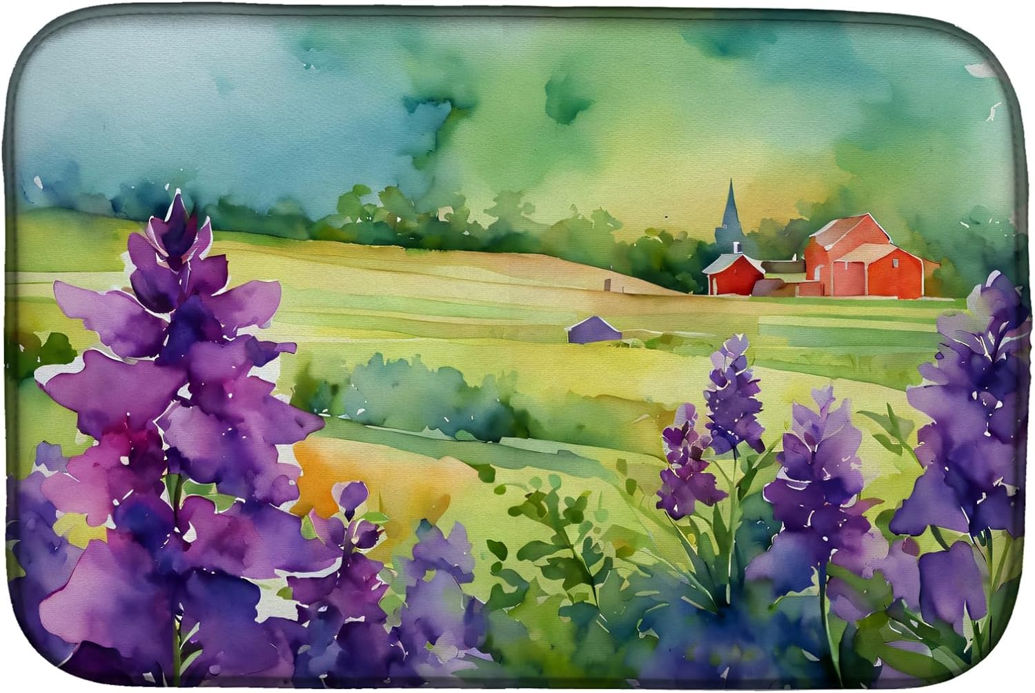 Dish Drying Mat featuring breed specific Texas Bluebonnets artwork. Say goodbye to messy countertops and soggy dish towels with our innovative dish drying mat. Our high-quality dish drying pad is designed to keep your countertops dry while offering a stylish and efficient solution. Whether you're air drying dishes, glasses, stemware, silverware, pots, pans, bottles, or even fruits and vegetables, our dish mat is the perfect choice. The 14 inches x 22 inches size fits most counters and dish drying racks, and the non-slip design ensures stability. Made with water-absorbent polyester and a polyurethane foam insert, our dish drying mat is not only functional but also durable. It's machine washable and printed in the USA for long-lasting use. The beautiful artwork adds flair to your kitchen decor, making it a perfect housewarming gift or present for any occasion. Upgrade your kitchen experience with our absorbent and versatile dish drying mat