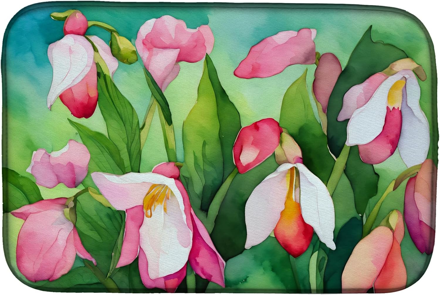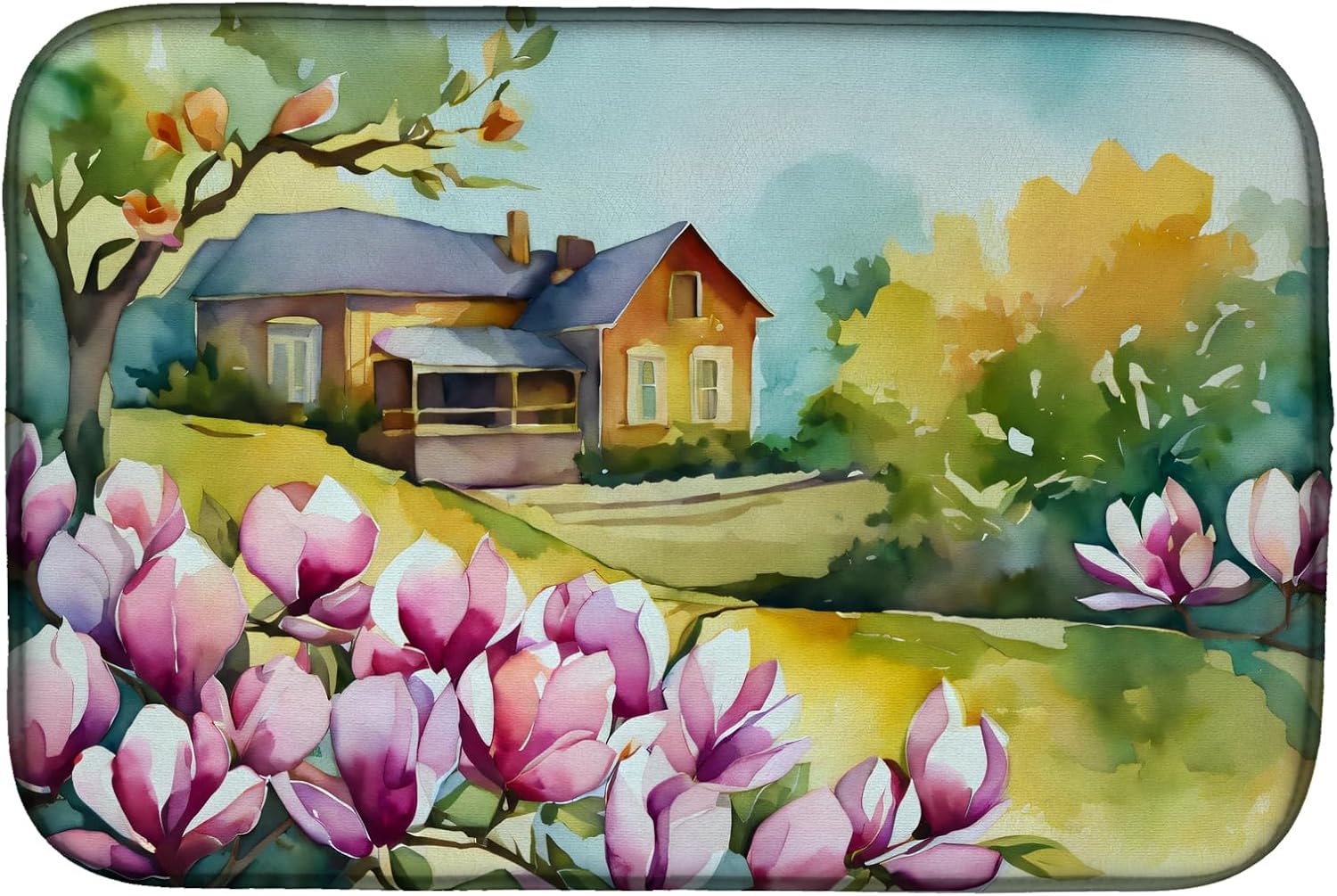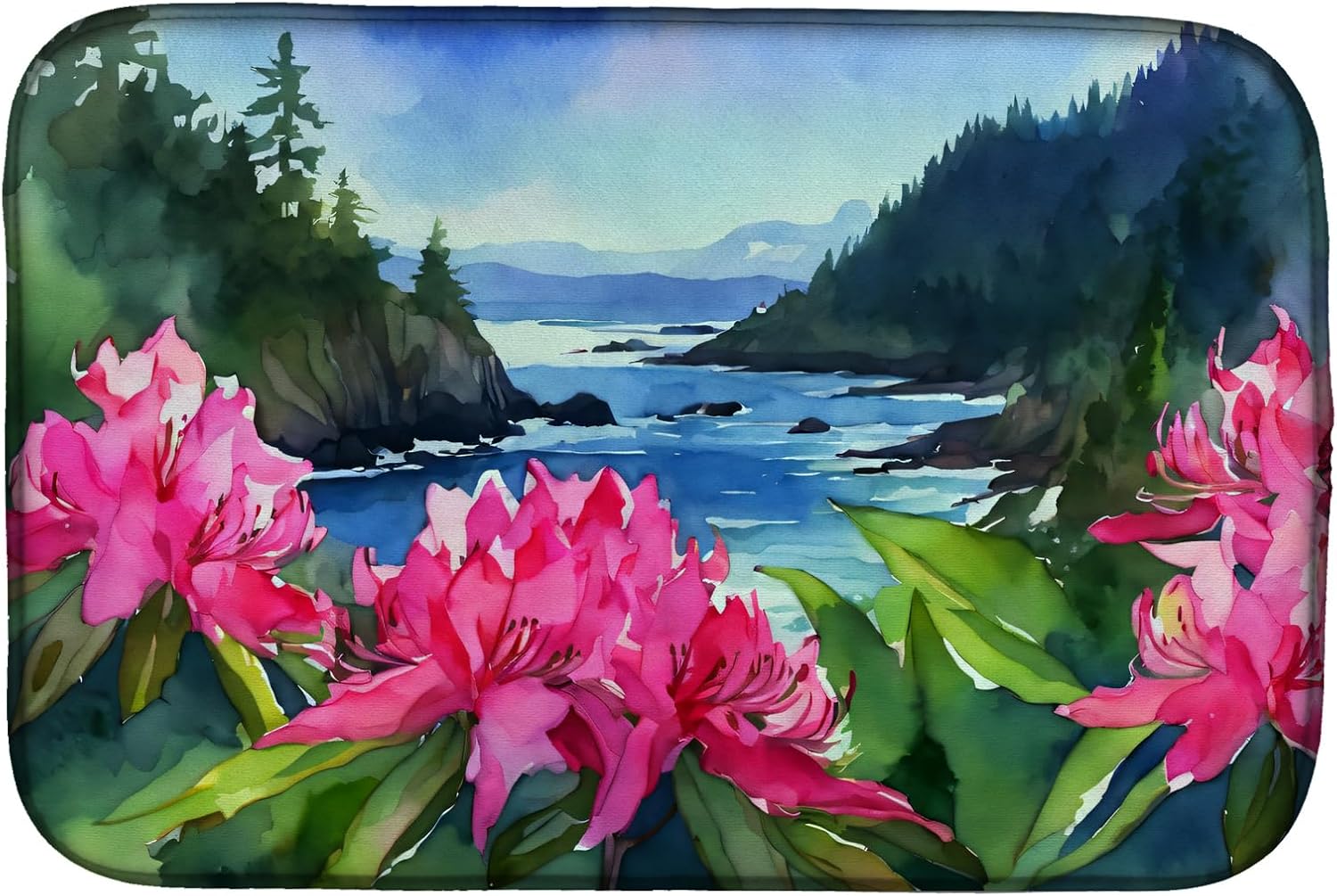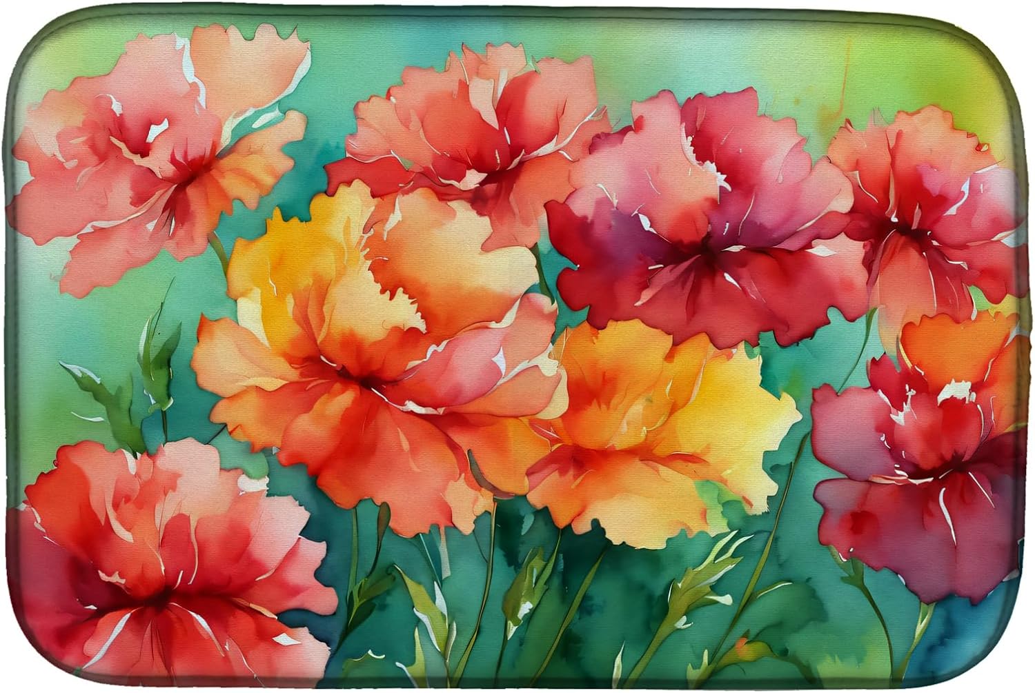 Dish Drying Mat featuring breed specific Texas Bluebonnets artwork. Say goodbye to messy countertops and soggy dish towels with our innovative dish drying mat. Our high-quality dish drying pad is designed to keep your countertops dry while offering a stylish and efficient solution. Whether you're air drying dishes, glasses, stemware, silverware, pots, pans, bottles, or even fruits and vegetables, our dish mat is the perfect choice. The 14 inches x 22 inches size fits most counters and dish drying racks, and the non-slip design ensures stability. Made with water-absorbent polyester and a polyurethane foam insert, our dish drying mat is not only functional but also durable. It's machine washable and printed in the USA for long-lasting use. The beautiful artwork adds flair to your kitchen decor, making it a perfect housewarming gift or present for any occasion. Upgrade your kitchen experience with our absorbent and versatile dish drying mat