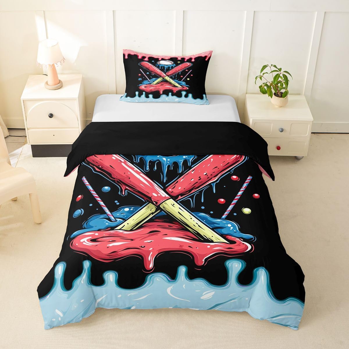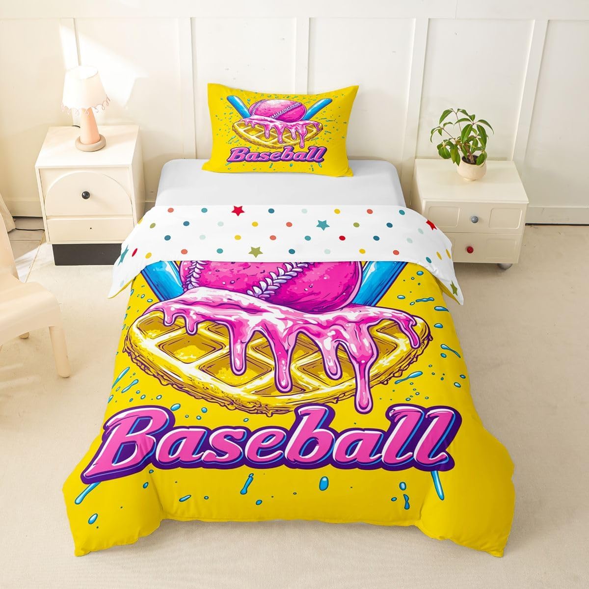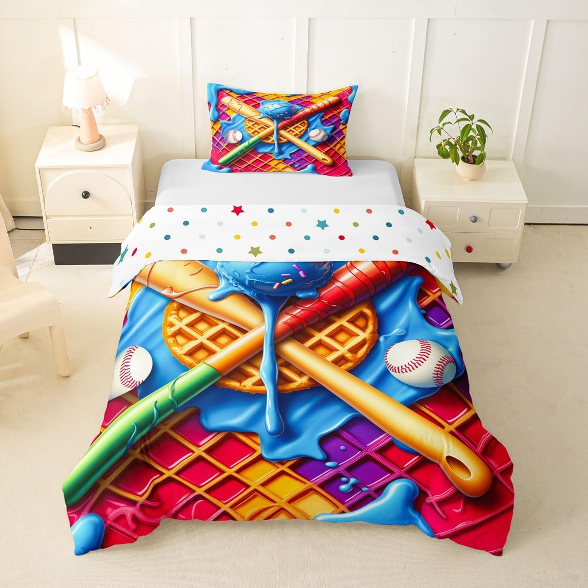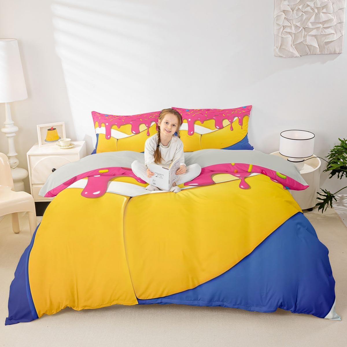 Package Include: Duvet Cover, Pillowcase; High Quality Duvet Cover Set Pattern Bedding Set, simply decorating your rooms any time you want, bringing you fresh feel for year round use. Polyester: Made from polyester microfiber, the sheet set offers strength, natural resistance to shrinking and a noticeably soft hand feel. Size Information: Toddler size 2pcs: 1 x Duvet Cover 42" x 58", 1 x pillowcase 20" x 30".Without Comforter. Twin size 2pcs: 1 x Duvet Cover 68" x 90", 1 x pillowcase 20" x 30".Without Comforter. Full size 3pcs: 1 x Duvet Cover 80" x 90", 2 x pillowcase 20" x 30".Without Comforter. Queen size 3pcs: 1 x Duvet Cover 90" x 90",2 x pillowcase 20" x 30".Without Comforter. King size 3pcs: 1 x Duvet Cover 104" x 90", 2 x pillowcase 20" x 36".Without Comforter. Personalize your bedroom: Beautiful design and colorful print, makes your bedroom unique and brings you a wonderful dream. Washing instructions: Machine wash separately in cold water,hang dry, do not bleach. Occasion: The cute soft duvet cover bedding sets designed for Children ,Adult, Men, Women, Teens. This duvet cover set is also suitable for full seasons, Spring, Summer, Autumn and Winter.