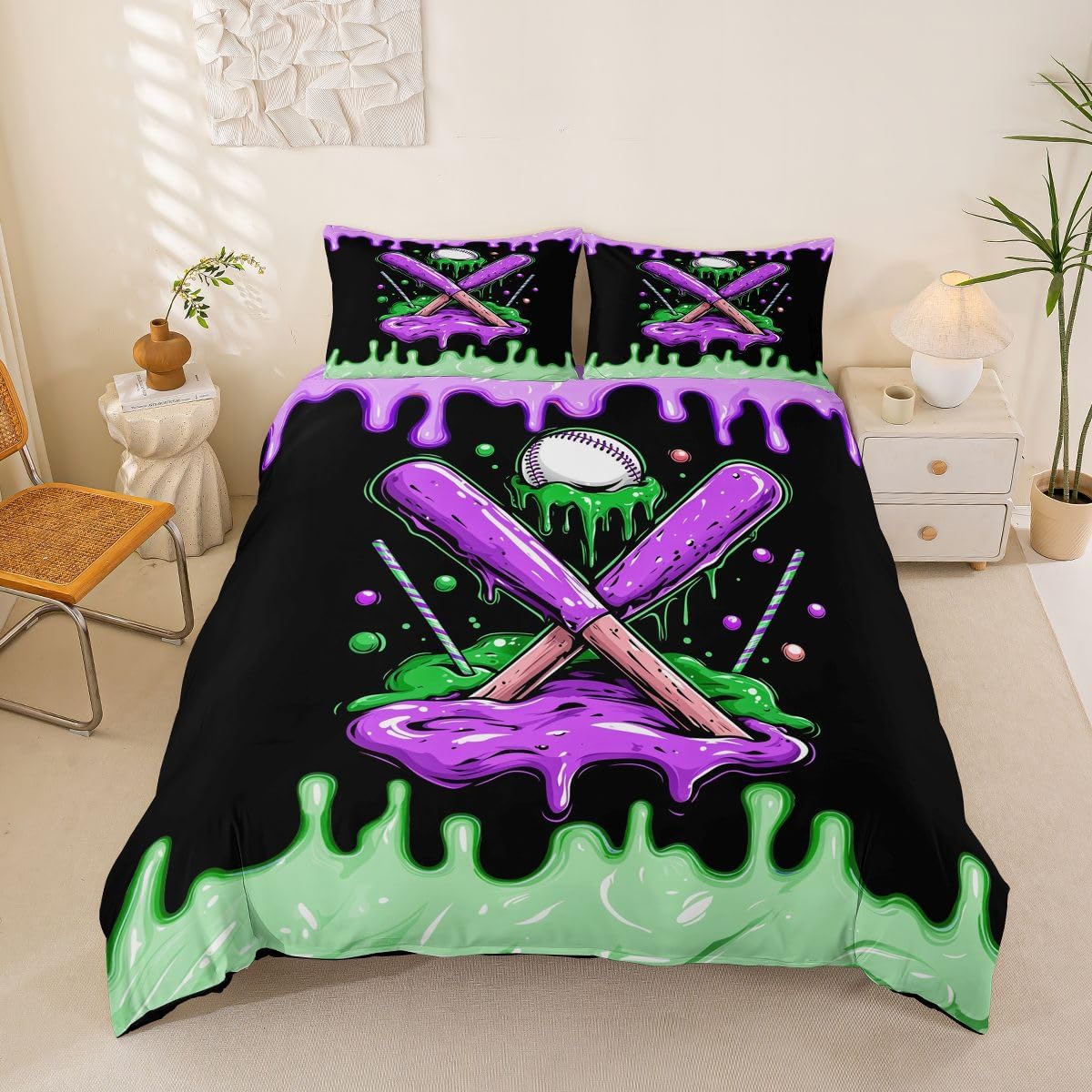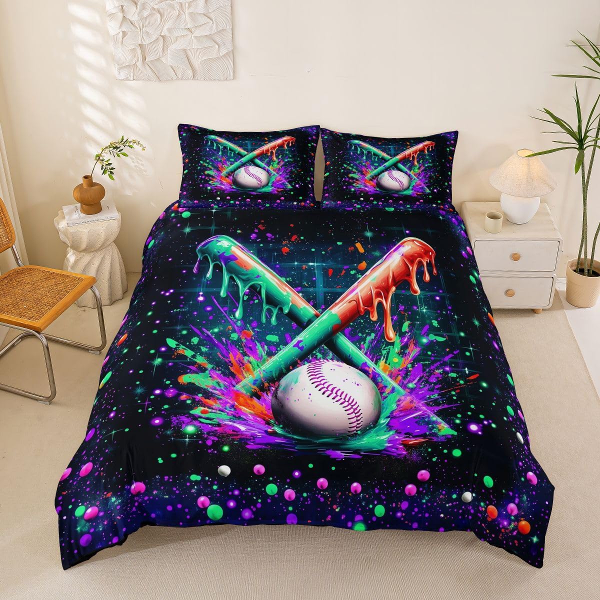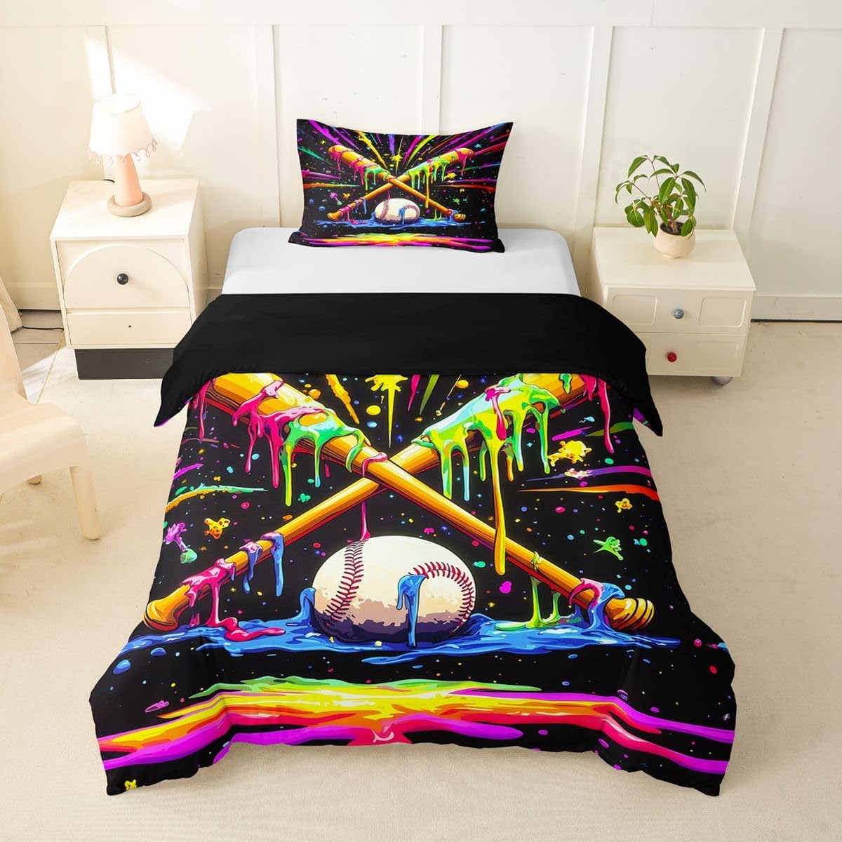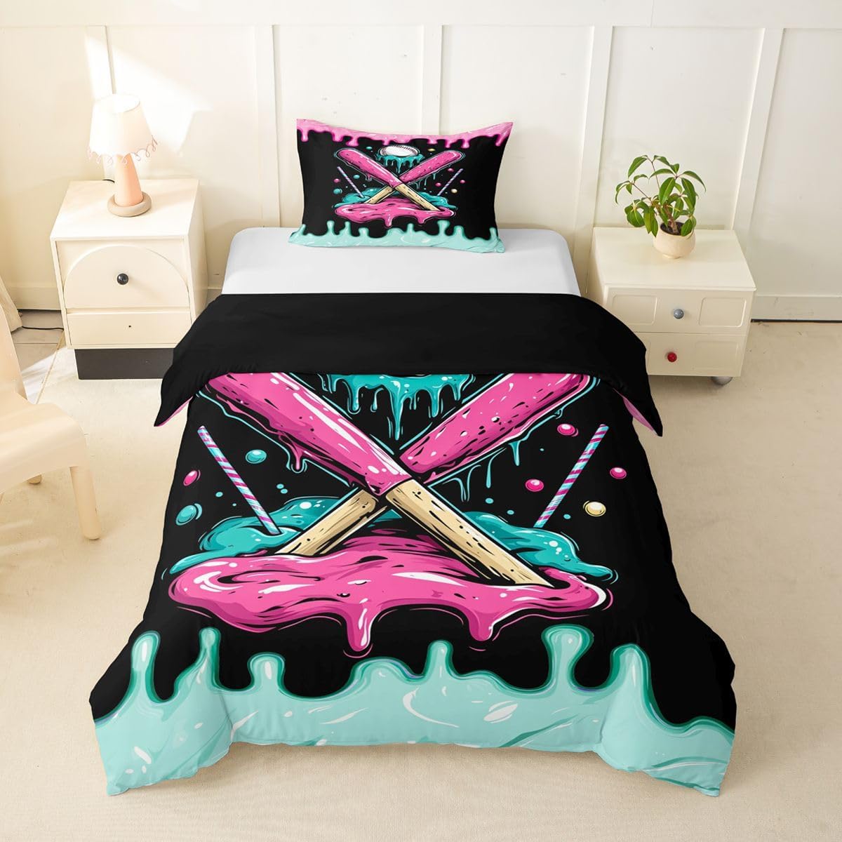Package Include: Duvet Cover, Pillowcase; High Quality Duvet Cover Set Pattern Bedding Set, simply decorating your rooms any time you want, bringing you fresh feel for year round use. Polyester: Made from polyester microfiber, the sheet set offers strength, natural resistance to shrinking and a noticeably soft hand feel. Size Information: Toddler size 2pcs: 1 x Duvet Cover 42" x 58", 1 x pillowcase 20" x 30".Without Comforter. Twin size 2pcs: 1 x Duvet Cover 68" x 90", 1 x pillowcase 20" x 30".Without Comforter. Full size 3pcs: 1 x Duvet Cover 80" x 90", 2 x pillowcase 20" x 30".Without Comforter. Queen size 3pcs: 1 x Duvet Cover 90" x 90",2 x pillowcase 20" x 30".Without Comforter. King size 3pcs: 1 x Duvet Cover 104" x 90", 2 x pillowcase 20" x 36".Without Comforter. Personalize your bedroom: Beautiful design and colorful print, makes your bedroom unique and brings you a wonderful dream. Washing instructions: Machine wash separately in cold water,hang dry, do not bleach. Occasion: The cute soft duvet cover bedding sets designed for Children ,Adult, Men, Women, Teens. This duvet cover set is also suitable for full seasons, Spring, Summer, Autumn and Winter.