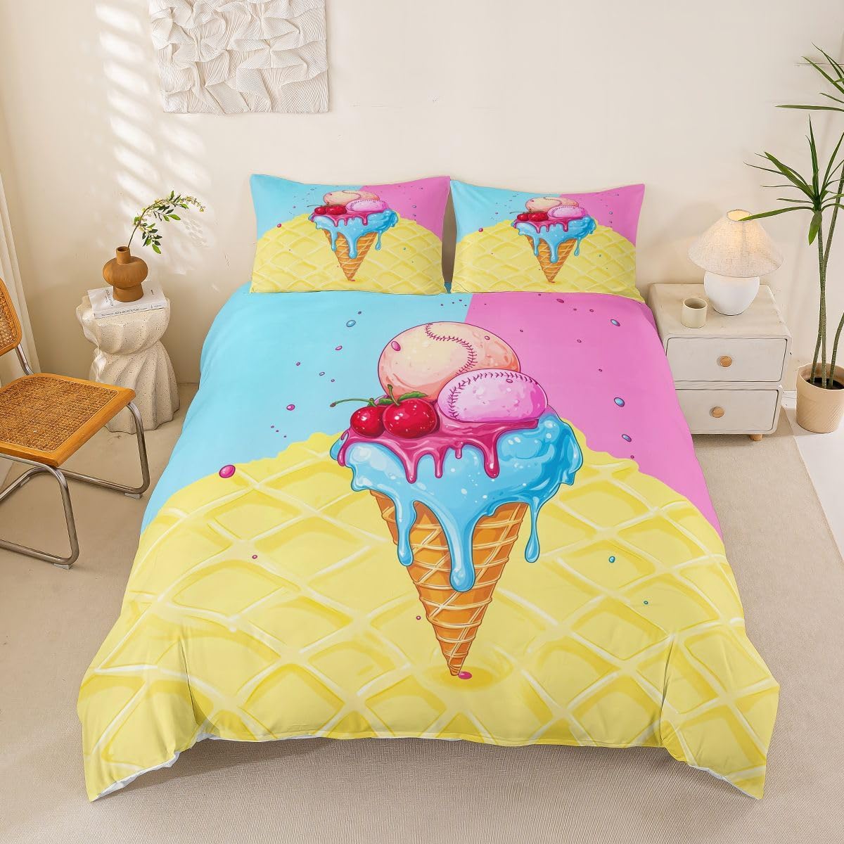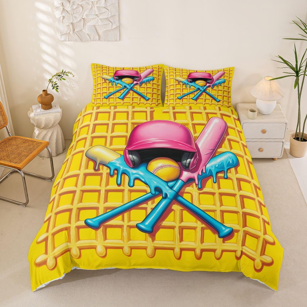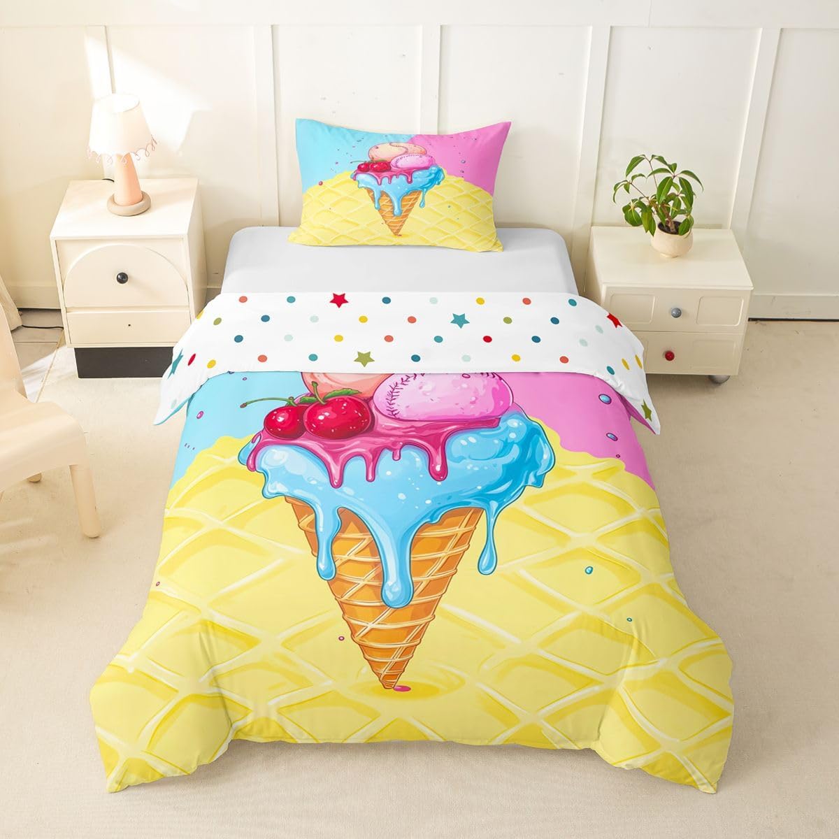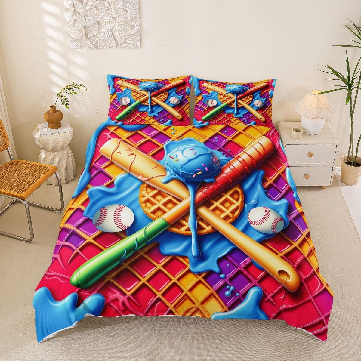 Package Include: Duvet Cover, Pillowcase; High Quality Duvet Cover Set Pattern Bedding Set, simply decorating your rooms any time you want, bringing you fresh feel for year round use. Polyester: Made from polyester microfiber, the sheet set offers strength, natural resistance to shrinking and a noticeably soft hand feel. Size Information: Toddler size 2pcs: 1 x Duvet Cover 42" x 58", 1 x pillowcase 20" x 30".Without Comforter. Twin size 2pcs: 1 x Duvet Cover 68" x 90", 1 x pillowcase 20" x 30".Without Comforter. Full size 3pcs: 1 x Duvet Cover 80" x 90", 2 x pillowcase 20" x 30".Without Comforter. Queen size 3pcs: 1 x Duvet Cover 90" x 90",2 x pillowcase 20" x 30".Without Comforter. King size 3pcs: 1 x Duvet Cover 104" x 90", 2 x pillowcase 20" x 36".Without Comforter. Personalize your bedroom: Beautiful design and colorful print, makes your bedroom unique and brings you a wonderful dream. Washing instructions: Machine wash separately in cold water,hang dry, do not bleach. Occasion: The cute soft duvet cover bedding sets designed for Children ,Adult, Men, Women, Teens. This duvet cover set is also suitable for full seasons, Spring, Summer, Autumn and Winter.