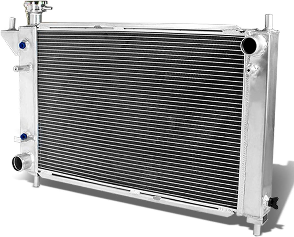 This aluminum radiator is designed to provide maximum cooling efficiency to prevent premature engine failure. Its light-weight, and high-heat transferring aluminum features a tube and fin design that, dramatically increases surface area that enables the heat to dissipate more efficiently. This aluminum radiator is at least 40% more efficient than stock ones. Most importantly, it has a much higher capacity for coolant than stock ones, which means that your cooling system will be more efficient and will be more resistant to temperature surges in racing applications.