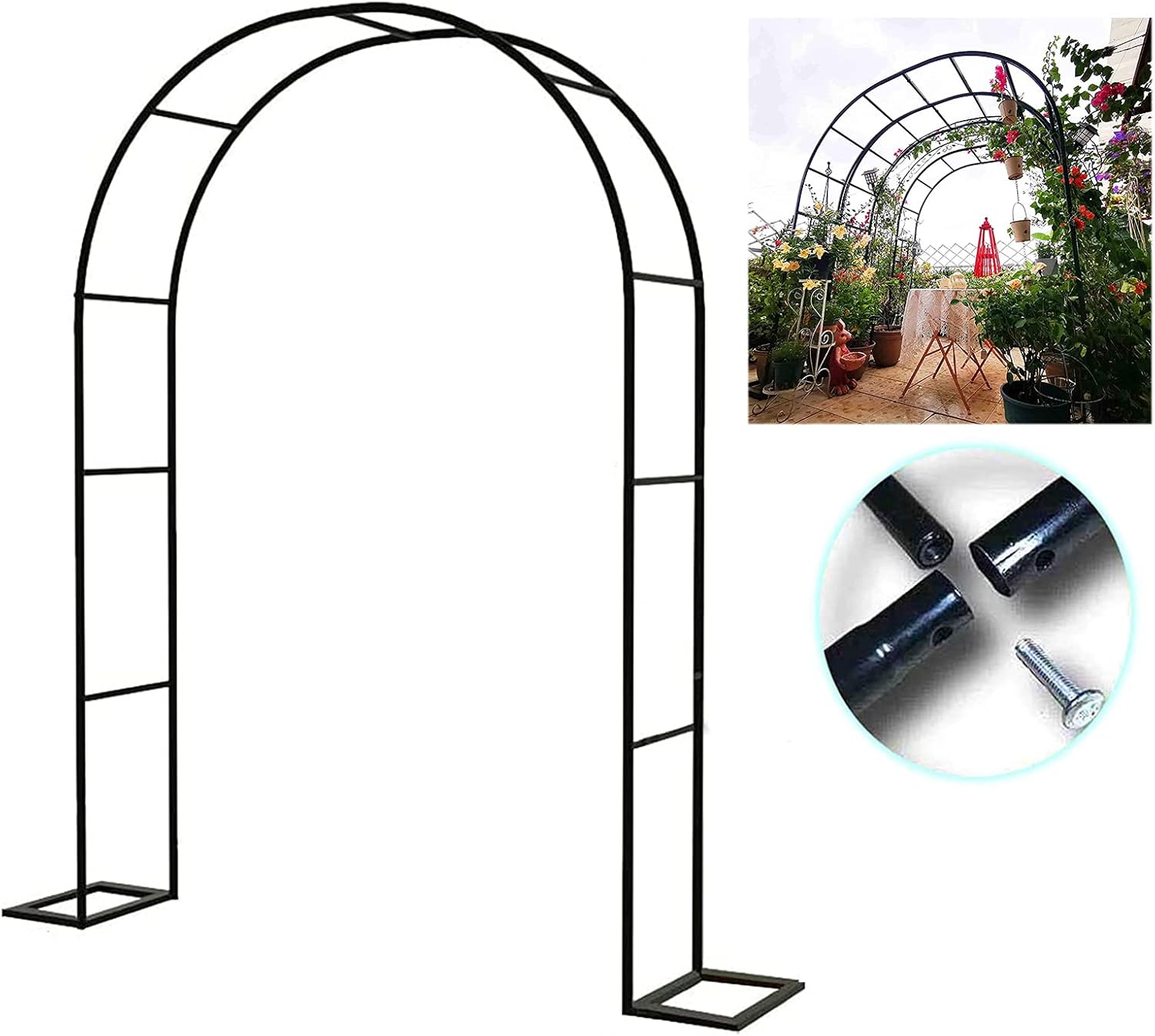 ◆ Turn wasted space into a lush, inviting way to welcome guests to your fun outdoor space. ◆ The arch is made of a lightweight and durable tubular structure that is easy to move. Although it is light, it can be used for a long time. I think this arch will give you a beautiful garden! ◆ Garden arches are ideal for supporting light climbing plants and grapevines, roses and flower stands. ◆ We have prepared an assembly base for you. You can easily set up the arch without damaging the concrete floor or tiles. Of course, you can also put it in the garden soil. ◆ Technical Support -Name: Garden Arch -Material: metal -Color: black, golden, white, dark green -Size: 120X220cm, 140X230cm, 280X220cm, 200X230cm, 240X220cm, 300X220cm, 350X220cm -Usage: balcony, terrace, garden, orchard, gate post, entrance, wedding venue -Packaging: 1x rose arch, 2 x removable base ◆ Installation icon 1. Connect the iron pipe and install the frame 2. Install the two frames 3. Install the crossbar and tighten with screws 4. The installation is complete ◆ Tips The delivery time is approx. 15-25 days. If there is any leakage or damage after receiving the product, please contact us in good time. We will resend asap. If you are satisfied with our products and services, please give us a 5-star rating, we will be very grateful! Your confirmation moves us forward.