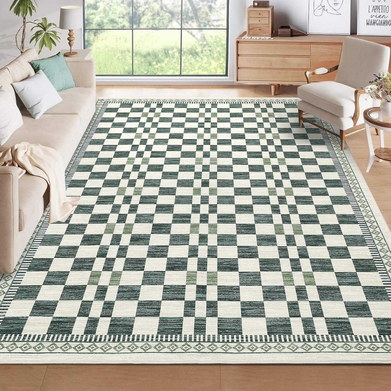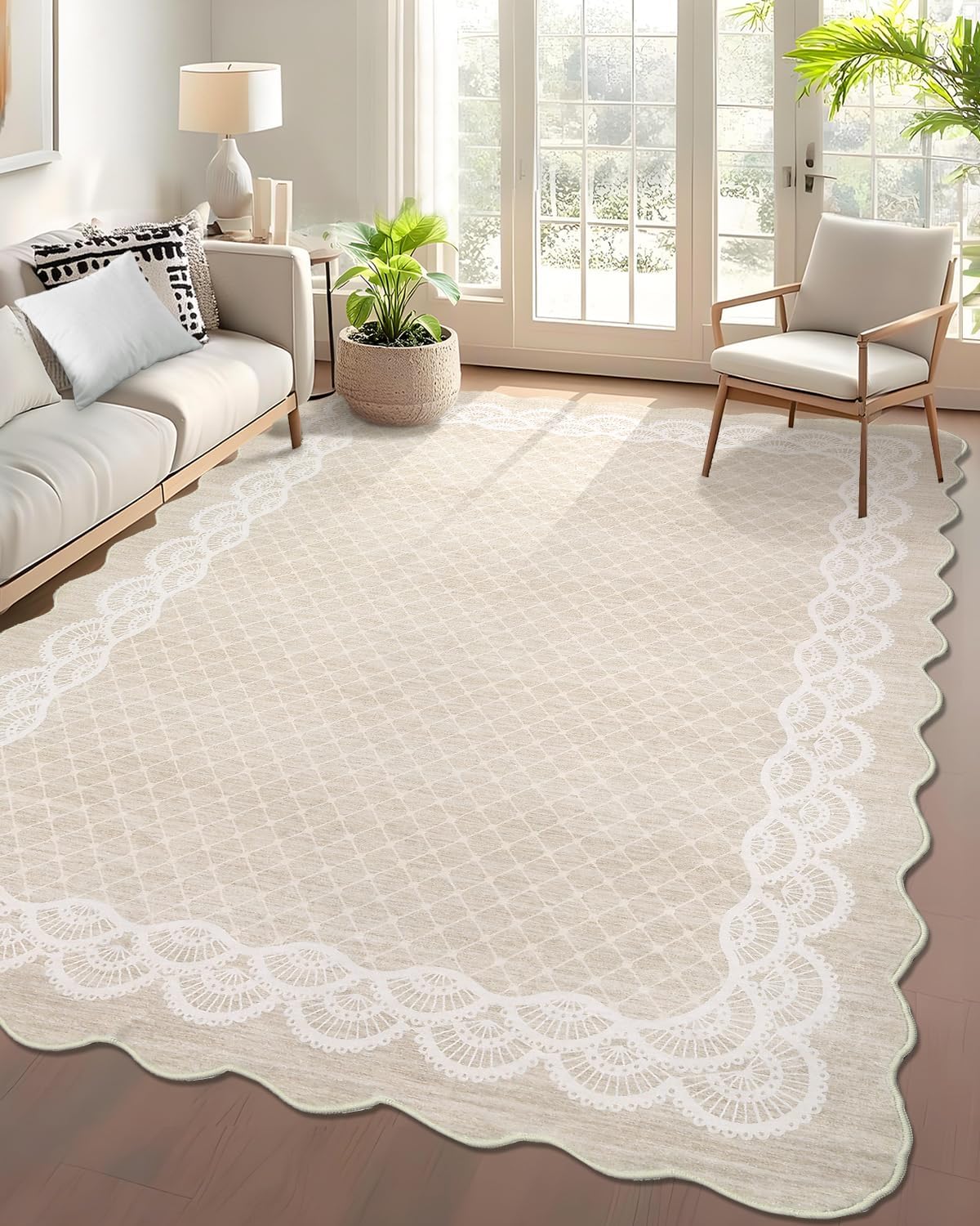 Garvee Washable Rugs for Living Room BedroomEver wish you could step out of bed onto a rug that's unbelievably soft, yet so easy to keep clean? Wondering how to keep your home stylish while making sure your kids and pets play safely? What if there was a rug that stays perfectly in place, doesn't trap hair or dirt, and fits effortlessly under any door or piece of furniture? Imagine enjoying ultimate comfort and modern style, with zero hassle—wouldn't that be the perfect addition to your home? Why settle for less when you could have comfort, convenience, and style, all in one rug?Highlights at a Glance:Ultra-soft, cloud-like living room rugModern border pattern for contemporary homesMachine washable and stain-resistantNon-slip backing, safe for kids and petsLow pile fits easily under doorsFoldable and easy to storePerfect for busy families and high-traffic spacesSpecification:Material: PolyesterSize: 2x6, 4x6, 5x7, 8x10, 9x12, 10x13Application: Bedroom/Living Room/Dining Room/Hallway/OfficePacking List:1 x Modern Rug1 x Instruction ManualFriendly Note:The digital images and product dimensions are as accurate as possible. However, due to differences in computer monitors, the colors may appear slightly different in person.The indoor accent rug may develop creases after being folded for shipping. To help the rug recover quickly, fold it in the opposite direction of the crease and lay it flat for a while.Avoid using bleach to maintain the color and texture of your floor carpet.