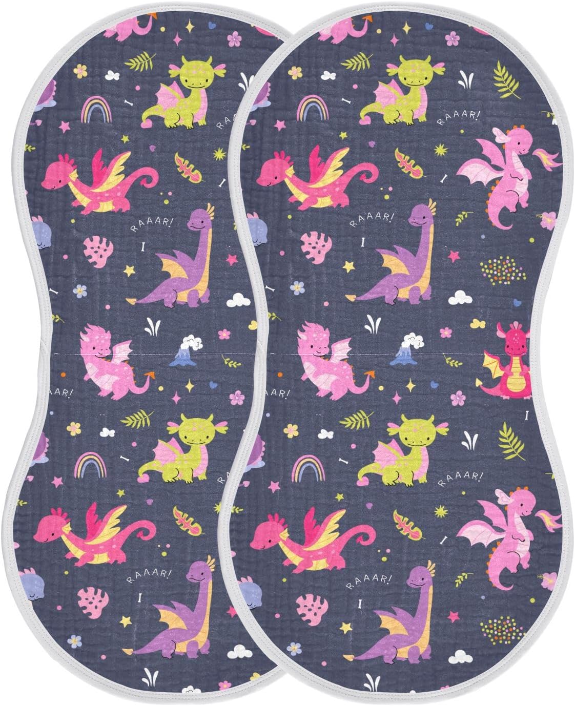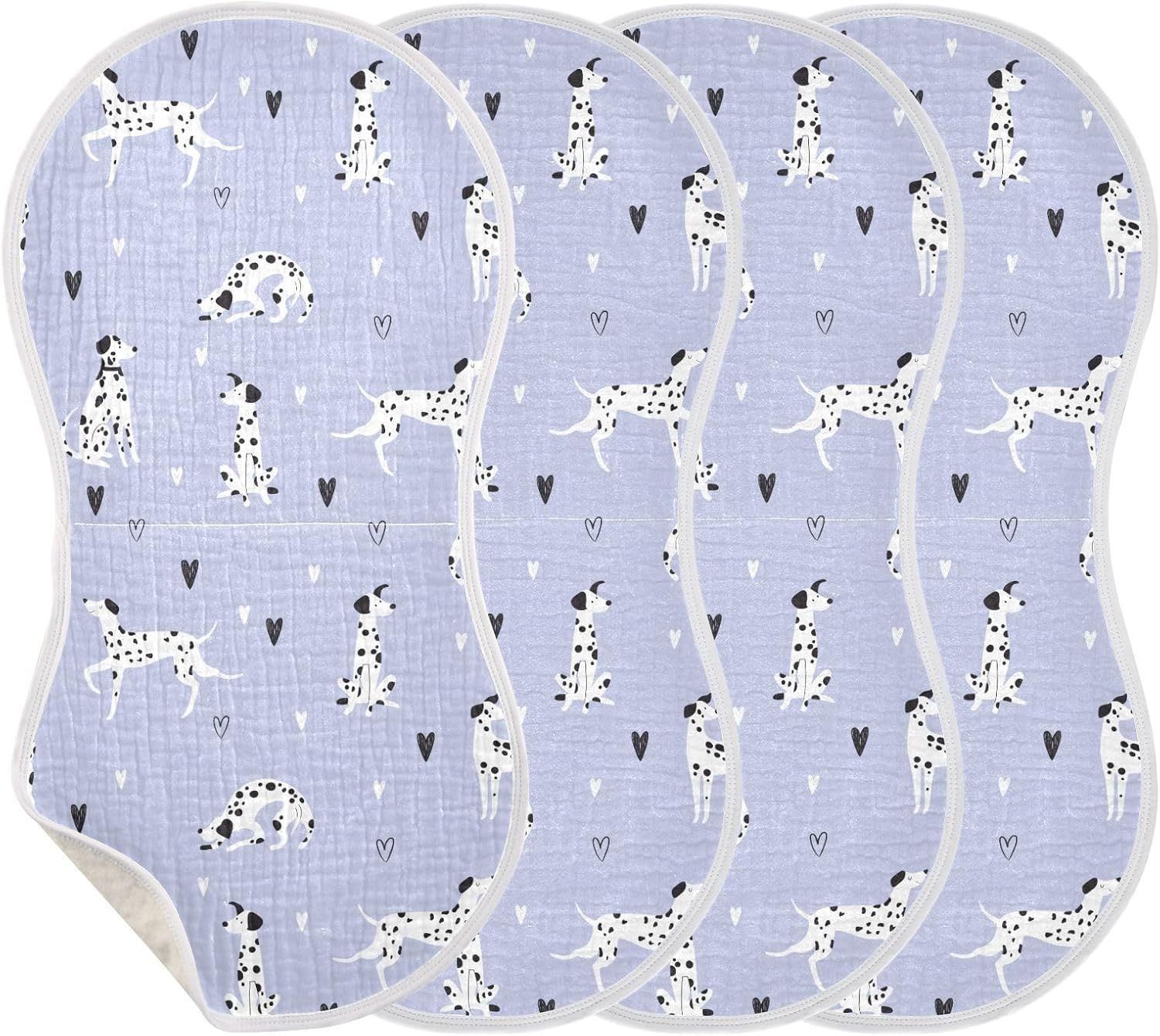 JHKKU muslin burp cloth emerges to make mothers and fathers more comfortable with their babies and more intimate with them.SpecificationMaterial: Cotton (contact surface) + TPU laminated polyester (laminated cotton layer)Product Size: 22 x 11 in (56 x 28 cm)Printing Instructions: Full print on one sideSet: 1/2/4 pack setBurp Towel Features-Made of pure cotton cotton yarn fabric, 4 layers of cotton yarn, soft and thick, good water absorption, skin-friendly fabric.-Excellent craftsmanship, no frayed edges, top stitching webbing for hanging.-Bottom terry cloth compound TPU waterproof film to prevent penetration of the bottom layer, absorb water without seepage, effectively prevent clothes from getting dirty.Washing InstructionsMachine wash or hand wash; below 30 ℃ warm water, do not use bleach and other detergents, should not be soaked for a long time, do not dry clean.ServiceOur service aim is to provide high quality products and considerate service, if you have any problems related to our products, please contact us, we will solve your problems and get your satisfaction. We want to thank you for your support to our products, thank you!