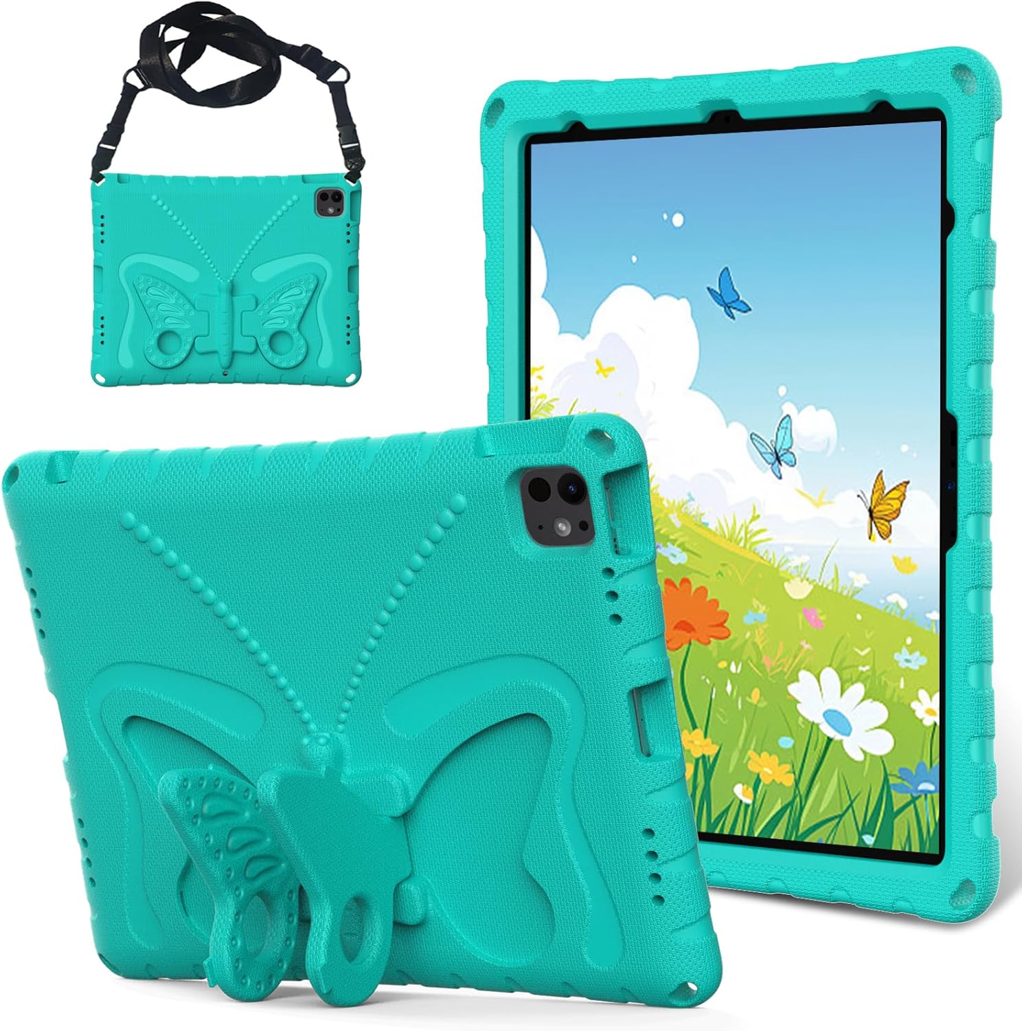 Cute Kids Case Compatible with iPad Pro 12.9 2022/2021/2020/2018 with Shoulder Strap Kickstand protective case. Completely covers your tablet, 360° protect your tablet from daily scratching Features: Made from kid-safe material to provide protection against bumps and drops. 1.Great Protection: Case Compatible with iPad Pro 12.9 2022/2021/2020/2018 made of lightweight yet Sturdy EVA(Ethylene Vinyl Acetate) foam material, child-proof and kid-friendly, protect Compatible with iPad Pro 12.9 2022/2021/2020/2018 tablet from accidental bumps, drops and scratches effectively. 2.Raised bezel around edges protects display from face first hard screen falls, shock and impact. 3.Compared with other material EVA is easier to clear and save.Outstanding advantages: non-color changing and no sticky with dirty. Light-weight,impact-resistant. 5.Allow easy access to all features and controls without removing the case, such as the speaker, camera and button. In addition, it is easy to install or remove. 6.Lightweight and soft EVA kids case, coming in multiple bright fun colors, is great for both girls and boys. Easy to install and provide worry-free protection. Package 1*Shockproof Case 1*Shoulder Strap