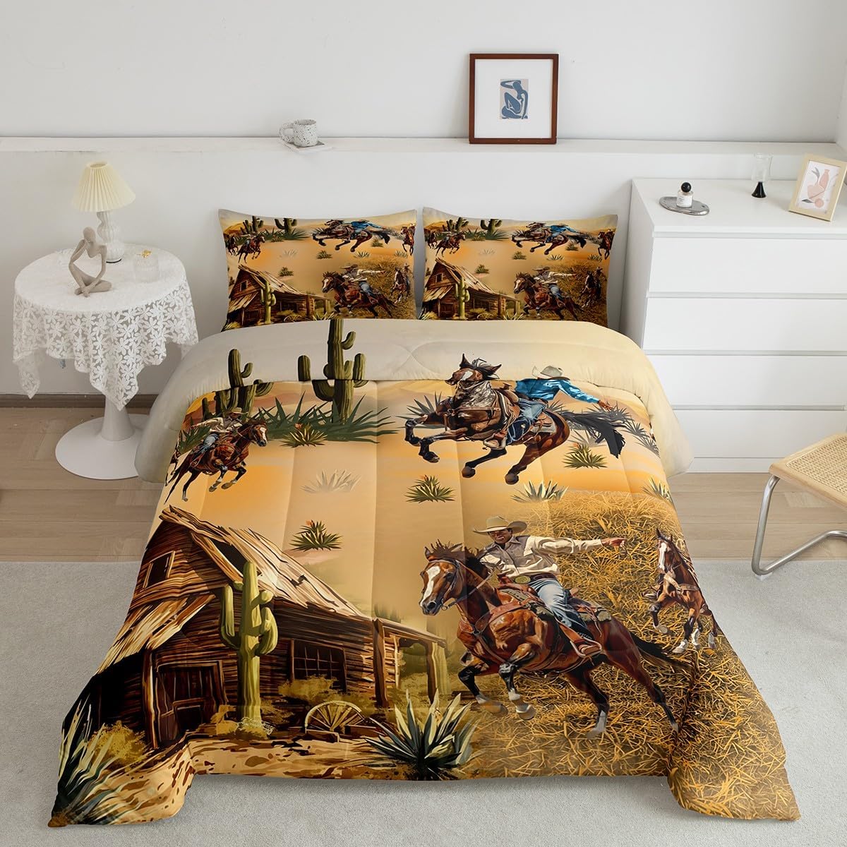Best blessings: Makeover your bedrooms every season with our Comforter sets. Perfect item for your room, girls boys youth room, master bedroom. Also can order it for your mom, dad, sister, brother, grandma, wife, husband, daughter, son and all other beloved. Size Information: 1 x Twin size down comforter 68"W x 90"L, 1 x quilted pillow case 30"W x 20"L, 2pcs. 1 x Full size down comforter 79"W x 90"L, 2 x quilted pillow cases 30"W x 20"L,3pcs. 1 x Queen size down comforter 90"W x 90"L, 2 x quilted pillow cases 30"W x 20"L,3pcs. 1 x King size down comforter 104"W x 90"L, 2 x quilted pillow cases 36"W x 20"Lx,3pcs. Useful and practical: A luxurious product for homes, dorm rooms, hotels, guest rooms. Practical to use for being polyester, feels like cotton which is super soft and breathable. No chemicals used, No dye substance harming the health of you or your family. Unique design: Vivid Colors won't fade thanks to new 3D digital printing methods. These unique designs match well with various color palettes of your rugs, curtains, headboard, furniture, and all other decor accessories. Personalized: As manufacturers of digital printed home textiles, we follow current trends and bring you the latest home fashion. You can give it to your family or friend, relative or boyfriend girlfriend, or to yourself, the item should be interesting and authentic. Note: Machine washed in cold water. Do not bleach, Tumble dry low. The Bedspread and Pillow Shams are printed on the Front Side Only.