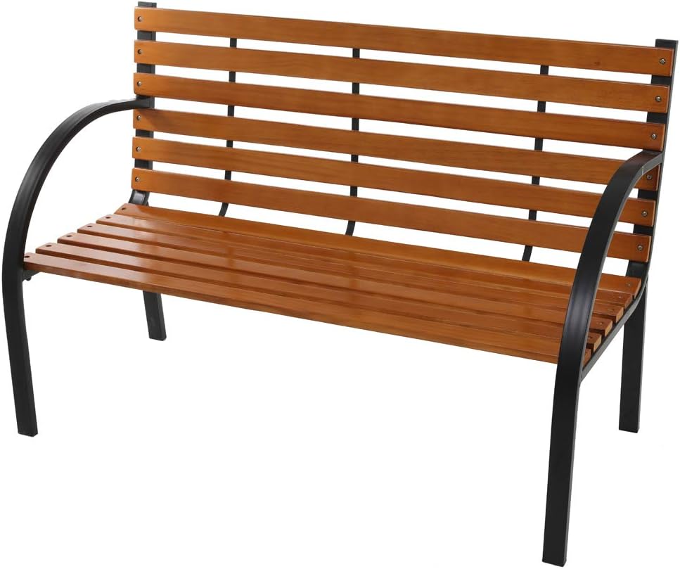 Introductions: Lounge comfortably or read a good book on this beautifully designed bench. The 49"" Garden Bench is ideal for both residential and commercial locations. It will fit perfectly on your backyard, porch, and path, or near your entrance and driveway. Antique style adds a touch of elegance to any outdoor area. Curved armrests with a sloped slatted seat offer optimal comfort. Powder-coat steel construction and weather-resistant hardwood provides years of durability as well as easy maintenance. Specifications: 1. Material: Iron Hardwood PVC 2. Color: Bronze Natural 3. Weight Capacity: 330lbs 4. Dimensions: (49.5x 20.5 x 30)" / (125.7 x 52.1 x 76.2)cm (L x W x H) 5. Weight: 28.7 lbs / 13 kg Package Includes: 1 x Garden Bench