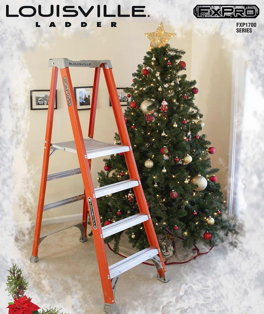 Product Description This Louisville Ladder 4-Foot Platform Ladder is crafted with fiberglass for non-conductive safety assurance, this platform ladder combines strength and durability to meet your needs. It features a large platform that is 19% larger than other step ladders, providing extra comfort for long jobs. For enhanced safety, the platform stepladder includes a waist-high handrail positioned at tool belt height, allowing you to work facing multiple directions with added comfort. Designed for increased stability, this platform step ladder is equipped with an oversized shoe for added support during use. The ProTop keeps multiple tools within easy reach, saving you time and effort on the job. Additionally, the heat transfer top is scratch and UV resistant, ensuring durability and compliance with OSHA regulations by retaining duty rating labels. From the Manufacturer Louisville, ladders trusted by the pros for over 65 years. The new FXP1700 series fiberglass pro platform ladder with ergonomically positioned ProTop increases productivity. Includes magnet and multiple tools slots. Thirty percent larger platform area for added comfort.