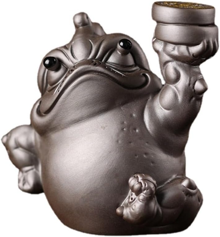 Lucky Golden Toad Tea Pet Ornaments Big Can Raise Three legged Toad Ge Kiln Tea Tray Utensils Creative Furnishings Ornaments Material: Ceramic Process: high temperature firing Application: decoration, attracting wealth, gifts, etc. The image of the golden toad is full, with money and jewelry embedded in its body, and its feet trampling on gold treasures Give people a feeling of 'wealth and wealth'. As the old saying goes, 'With a golden toad at home, wealth is abundant' Why we need a tea pet ? A tea pet is used as a decoration on your tea tray while you are serving the tea. "Feed" the tea pet by pouring water.After time the clay will take on a shiny luster. As the glossiness increases through prolonged period of nourishment. The most tea lovers yearn to keep a tea pet for their collection alongside their gongfu tea set. Fine polish process, smooth surface, very delicate, will not scratch the skin, very creative. Car Dashboard decor
