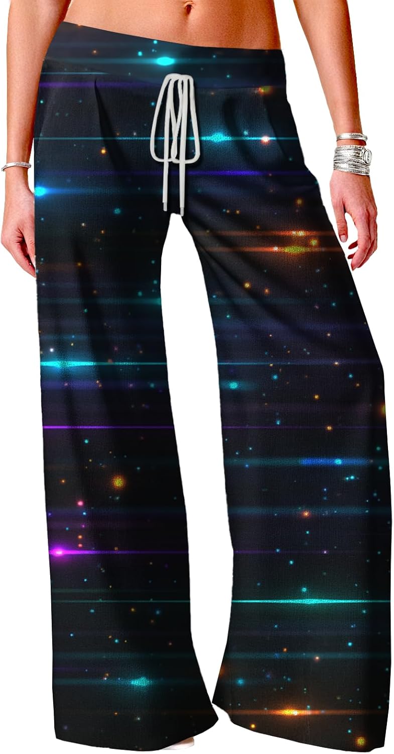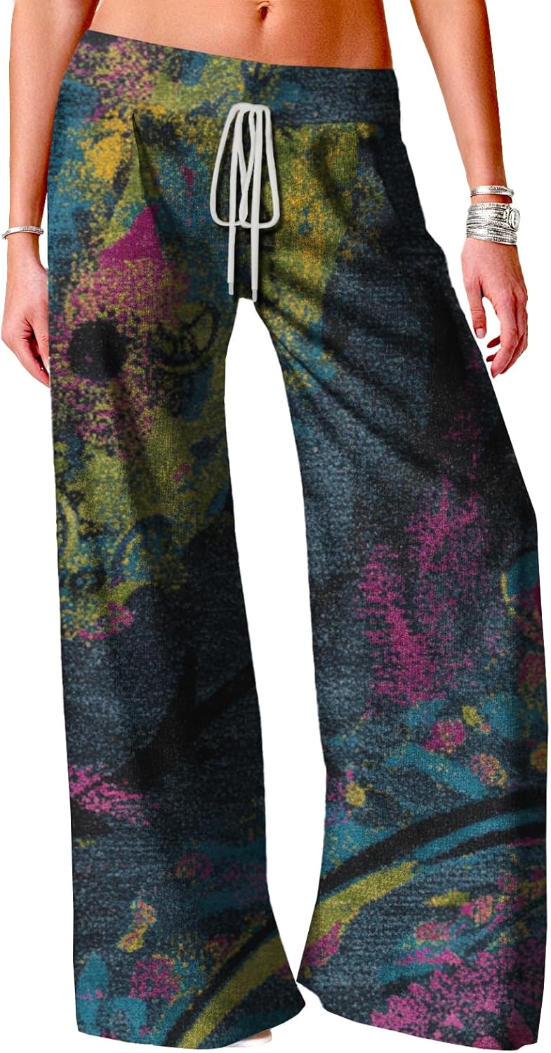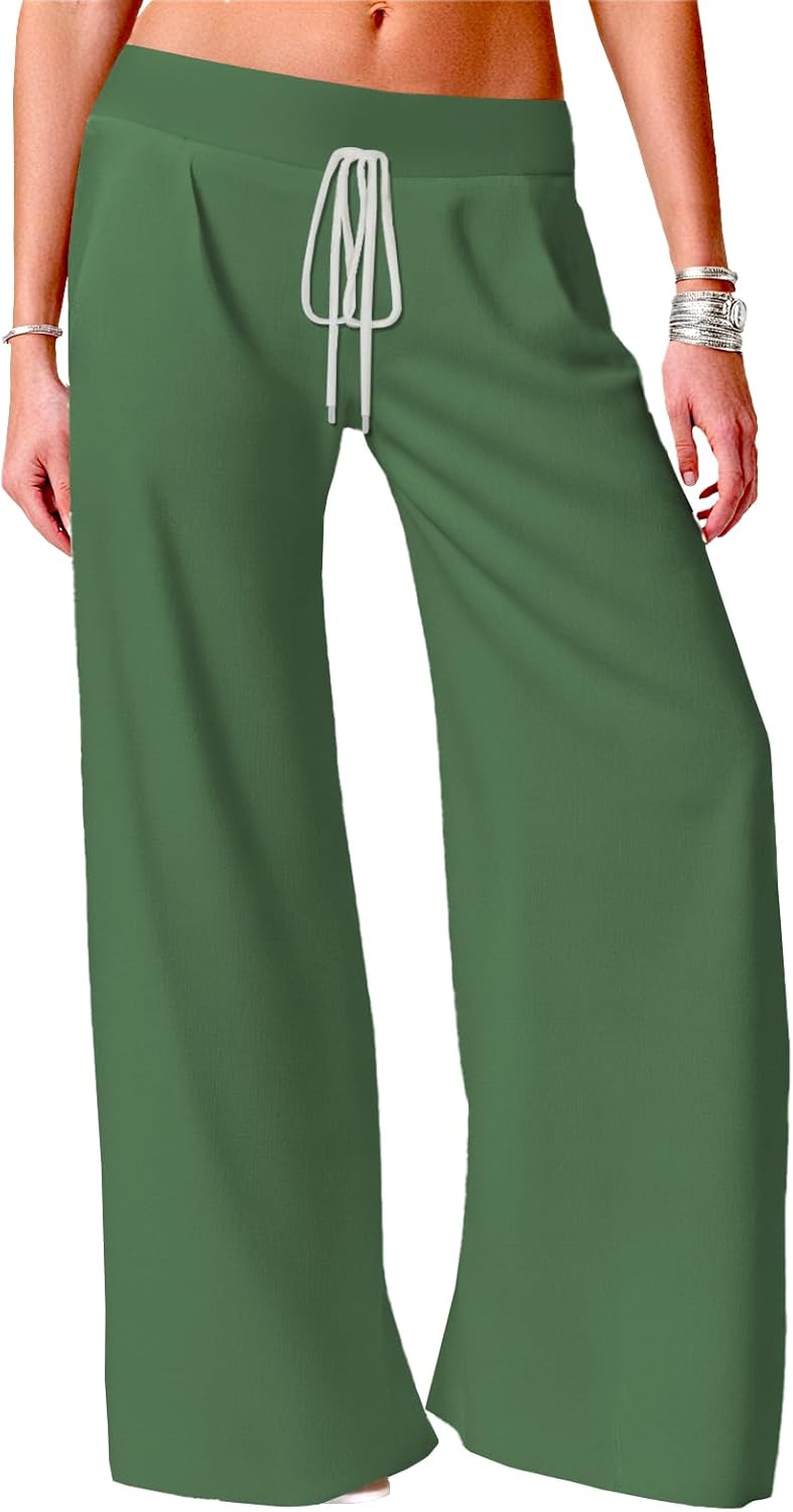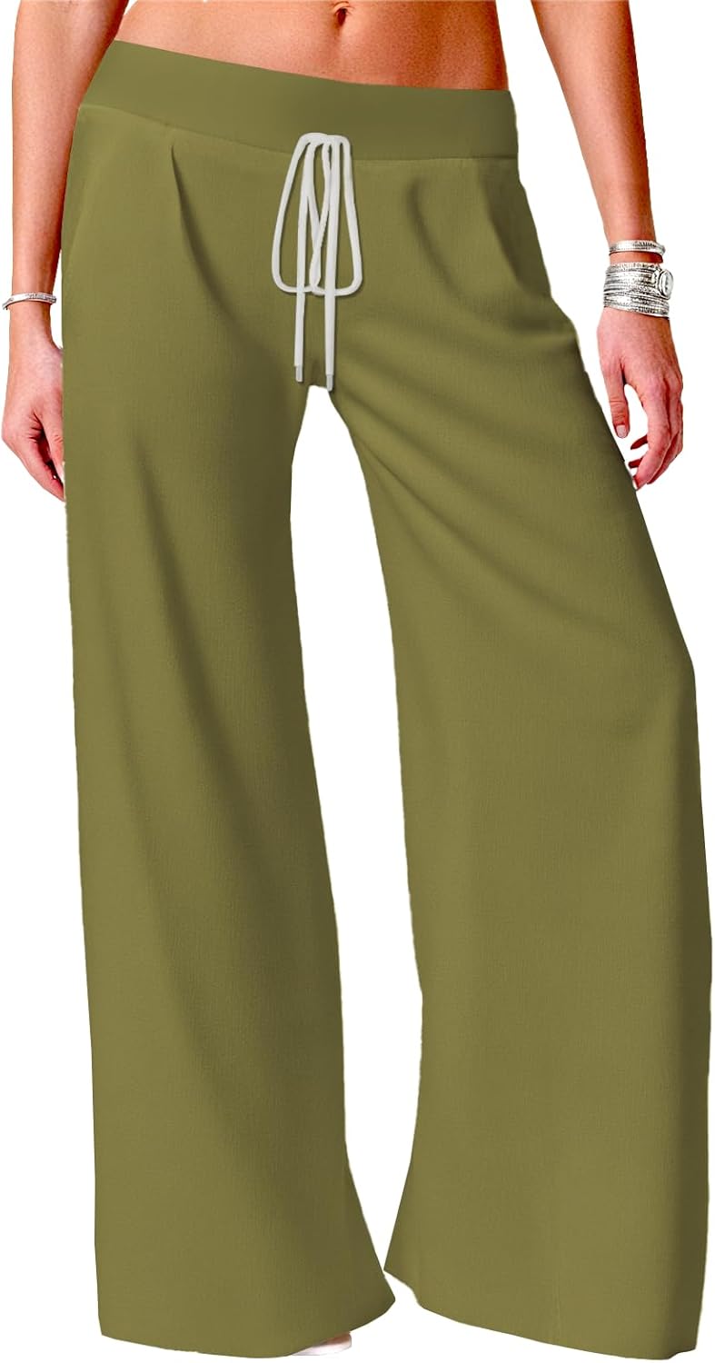 MARSVOVO Casual Wide Leg Pants for Women Trendy Loose Fitting Comfortable Lightweight Plus Size Drawstring Low Waisted Flowy Pants Summer Vacation Beach Trousers