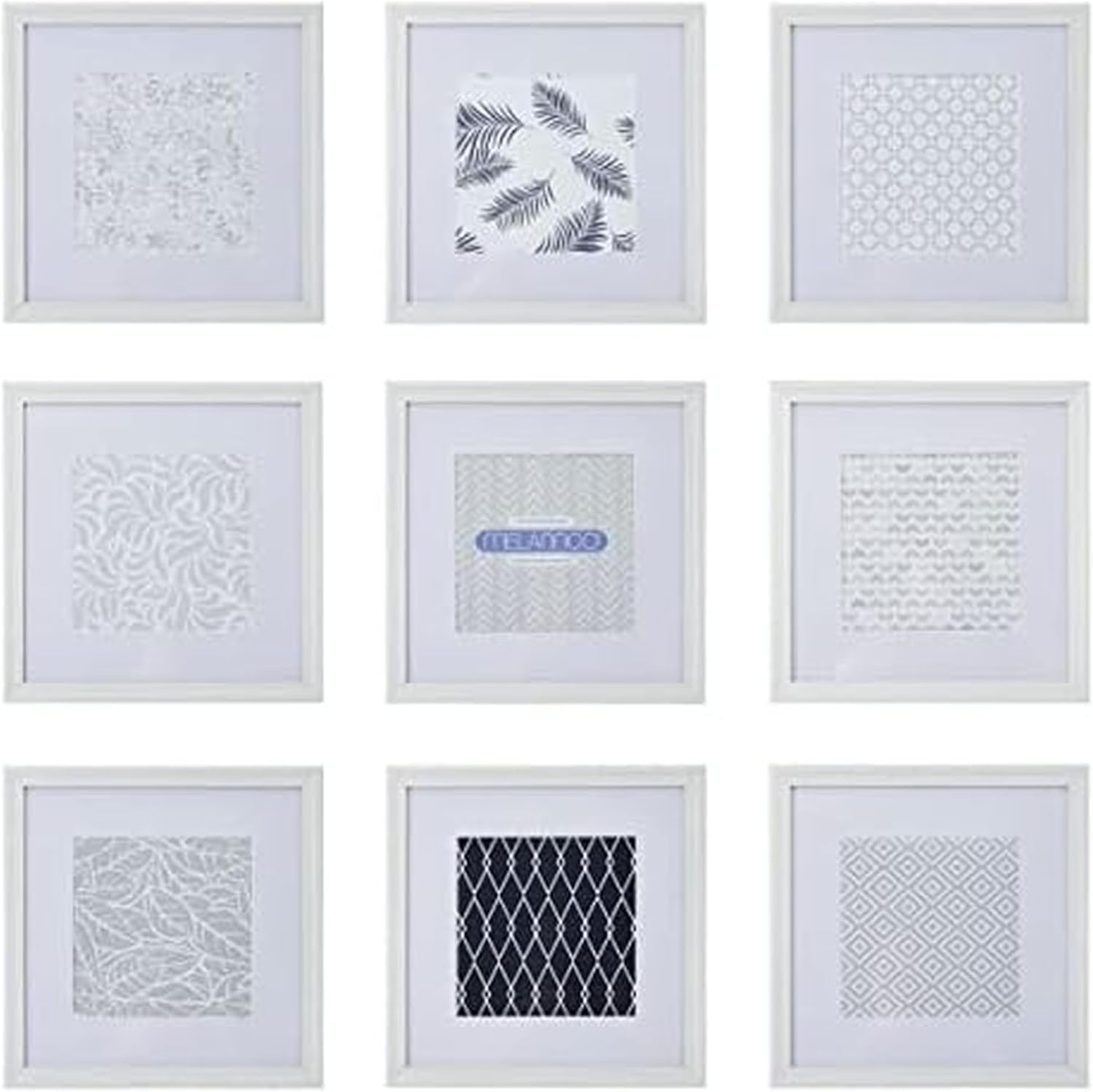This set of Matted Black Frames by Melannco includes 9 individual square frames. Showcase a special memory by placing one 8 x 8 inch photo of family, friends, pets, and more in each frame. The classic, black finish gives a modern look to your decor and complements any room. Use d-ring hangers on the back of the frame to hang vertically or horizontally. Hang in your living room, bedroom, bathroom, and more. Measures 12.8 x 12.8 inches each.