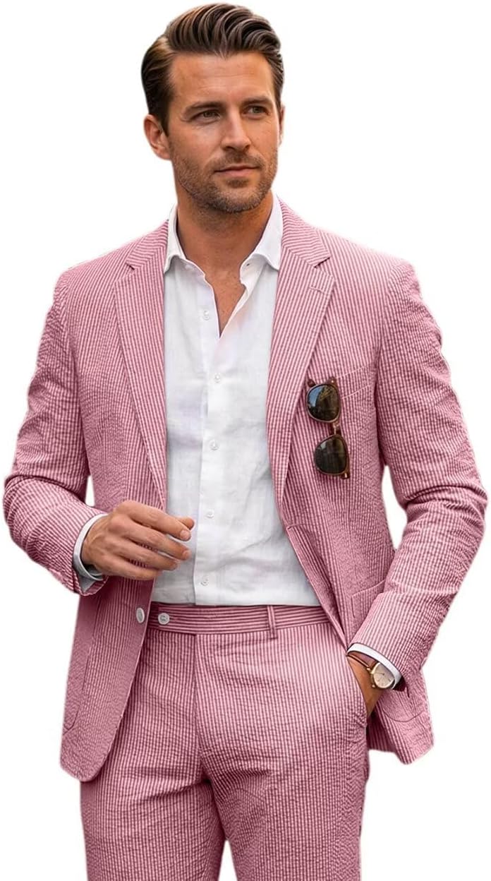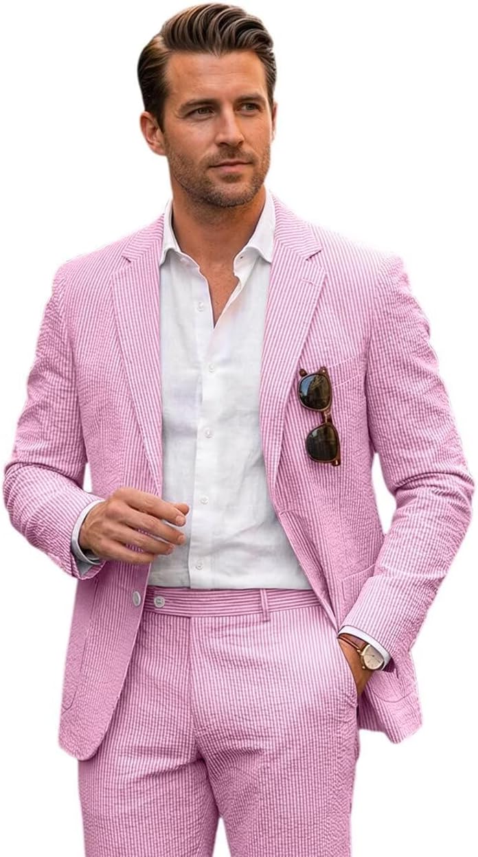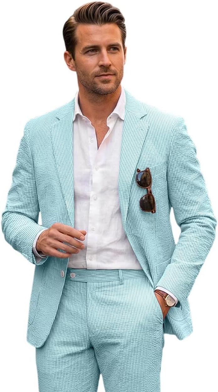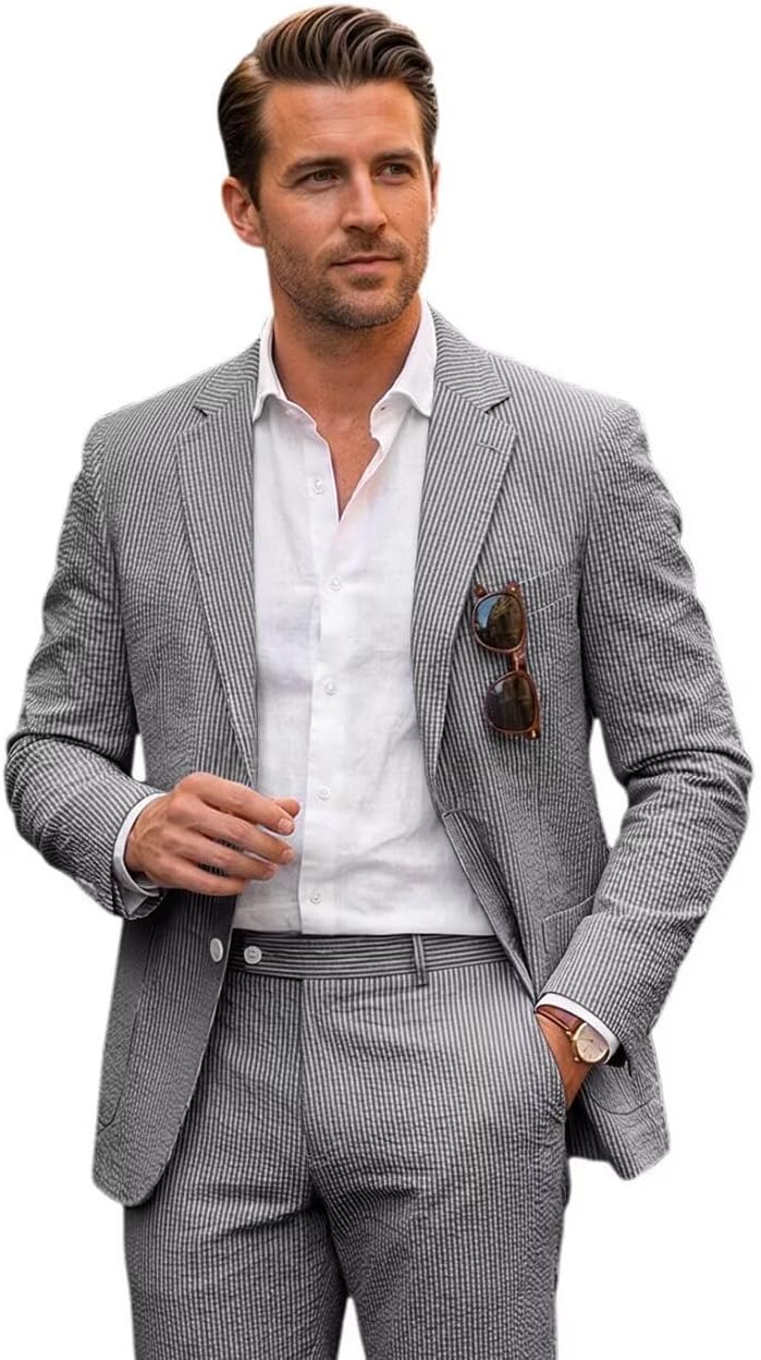 | Occasion Type | Daliy Outfit Suit Set, Formal Suits Slim Fit, Men Striped Slim Suit Set, Seersucker Men Suit, Suit Men for Summer Beaches Wedding |