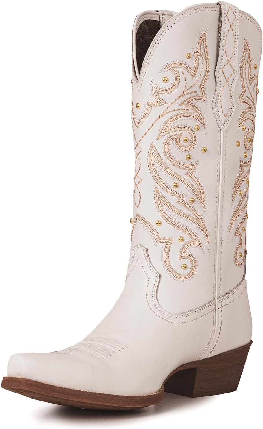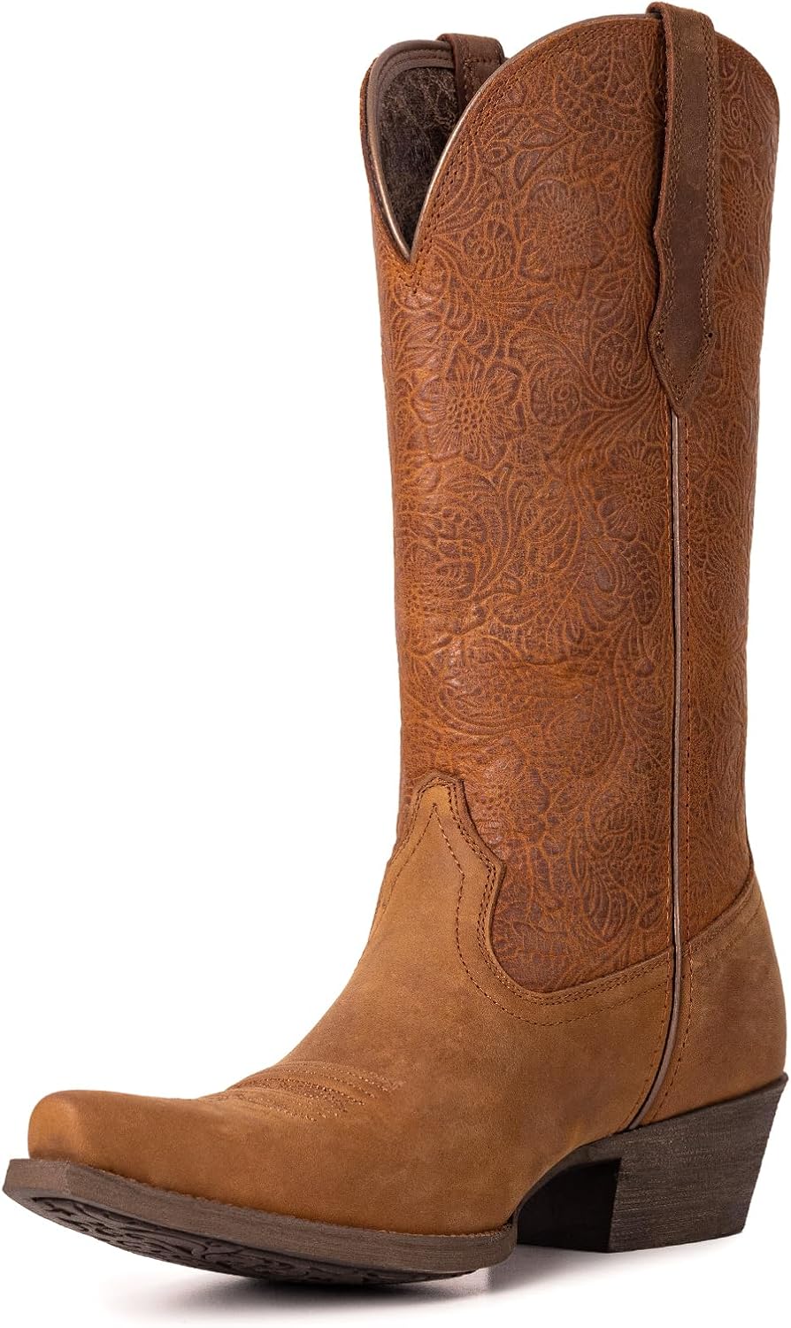 This women's cowboy western boot is handcrafted from all genuine cowhide leather with beautifully embroidered details for a classic western look. The boots feature a durable insole, arch support system and non-slip outsole to ensure superior comfort for everyday wear.