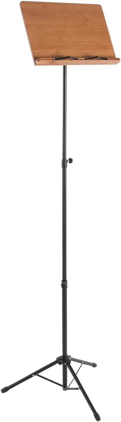 DescriptionAre you looking for an exquisite and practical music stand for your instrument performance and practice? Our product can be your ideal choice. It is made of premium bamboo boards, durable but lightweight. With adjustable designs, it applies to different heights of the performers and different situations of the performance venue.Key FeaturesSimple Installation: With the simple 2-part structure, you don't need to spend much effort and time on the installation of the product. Effortless Cleaning: It has a smooth surface and an open structure, so you only need to wipe the dust with a towel.Thoughtful Gift: With good performance and an exquisite appearance, it can be used as an ideal gift for your relatives or friends who love instrumental performance to have a good music performance and practice.DetailsAnti-slip Feet: This stand has three non-slip feet with a protective cover at the bottom to keep it stand stable and avoid floor scratching.Fixing Brackets: In the design of the score surface, we have added fixing brackets with soft rubber sleeves to fix the score while also protecting it from damage. ApplicationIt not only can be used for scores of various instruments, such as guitar, violin, Erhu, and Guzheng, but also is suitable for various performance occasions, such as orchestra, choir, and solo.SpecificationColor: BrownStyle: ClassicPattern: Hollow-outAssembly Required: YesMounting Type: FreestandingMaterial: Bamboo Fiber Press Board, MetalProcess: Cutting, Polishing, PaintingMax. Load Capacity: 5kg/11.02lbsScoreboard Size: 38*29cm/14.96*11.42inAdjustable Height: 70-180cm/27.56-70.87inPackage Size: 73.5*40*8.4cm/28.93*15.74*3.3inGross Weight: 3kg/6.61lbsNet Weight: 2.5kg/5.51lbsPackage Included1*Music Score Rack 1*Tripod Notes1.Please do not expose the product to the sun or soak it in water for a long time. 2.Please allow the slight color difference caused by the shooting light and 1-3cm error due to manual measurement, and make sure you do not mind before ordering.