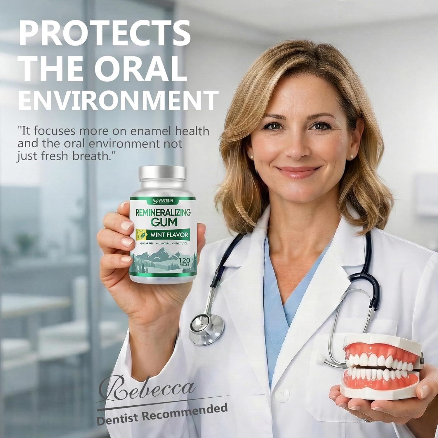 Remineralizing Gum for Enamel Support - 120 Pieces Mint Flavor Xylitol Chewing Gum Sugar Free for Oral Care - to Maintain Healthy Oral pH - Non-GMO and Aspartame Free