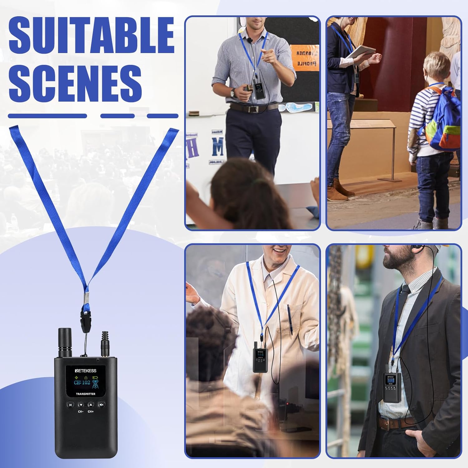 | Antenna Location | Wireless tour guiding, church translation, long tours, large-scale activities, and external audio source integration |