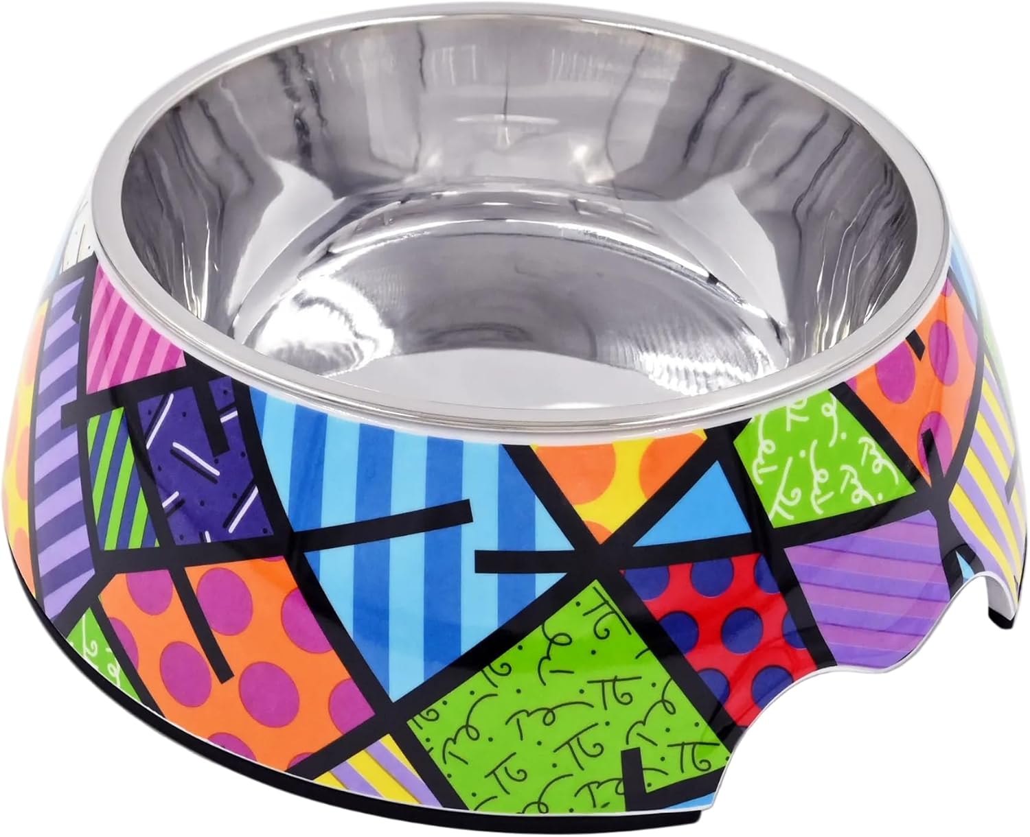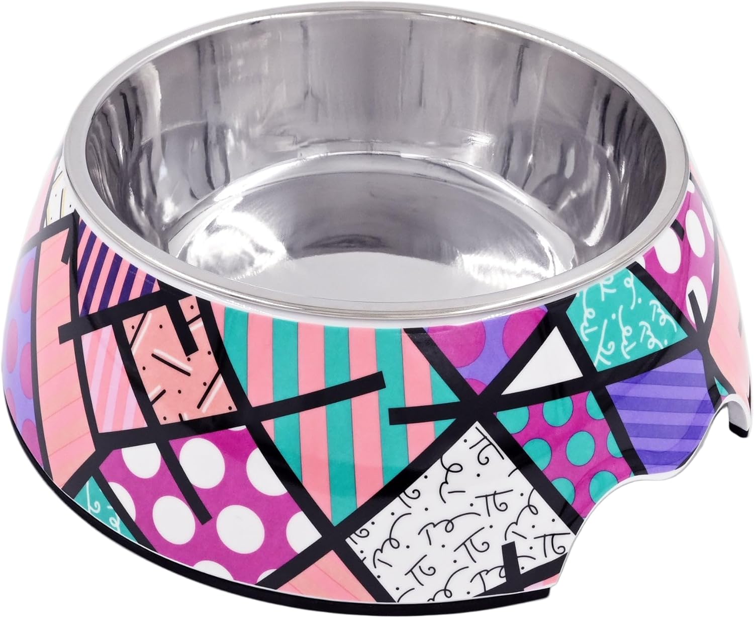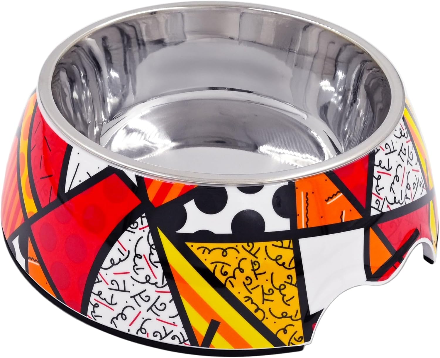 Elevate your pet's dining experience with the Romero Britto Pet Bowl, where style meets functionality in a vibrant expression of love for your furry friend. Inspired by the iconic artwork of Romero Britto, this pet bowl is designed to sprinkle joy into meal times with its bright pink bones and hearts pattern. Not just a feast for the eyes, this bowl is crafted from high-quality, food-grade stainless steel, ensuring a durable, washable, and rust-resistant mealtime essential that caters to your pet's health and hygiene. Understanding the importance of mealtime safety, the bowl features a non-slip base, minimizing spills and messes by keeping the bowl steady as your pet enjoys their food or water. Catering to pets of all sizes, from the petite to the grand, it offers the perfect portion sizes for both food and water, aiding in proper nutrition and hydration management. This versatility extends to its ease of use, being an ideal vessel for both dry and wet foods, and the convenience of being dishwasher safe makes it a practical choice for pet owners. The Romero Britto Pet Bowl transcends its function as a mere pet accessory; it stands as a vibrant celebration of art and a testament to the joy pets bring into our lives. Its design not only enriches your home with a splash of color but also reflects the care and affection you hold for your pets. Whether for your own cherished companion or as a thoughtful gift for a fellow pet lover, this pet bowl is a perfect blend of artistry, function, and love. Choose the Romero Britto Pet Bowl today and transform mealtime into an extraordinary moment for you and your pet.