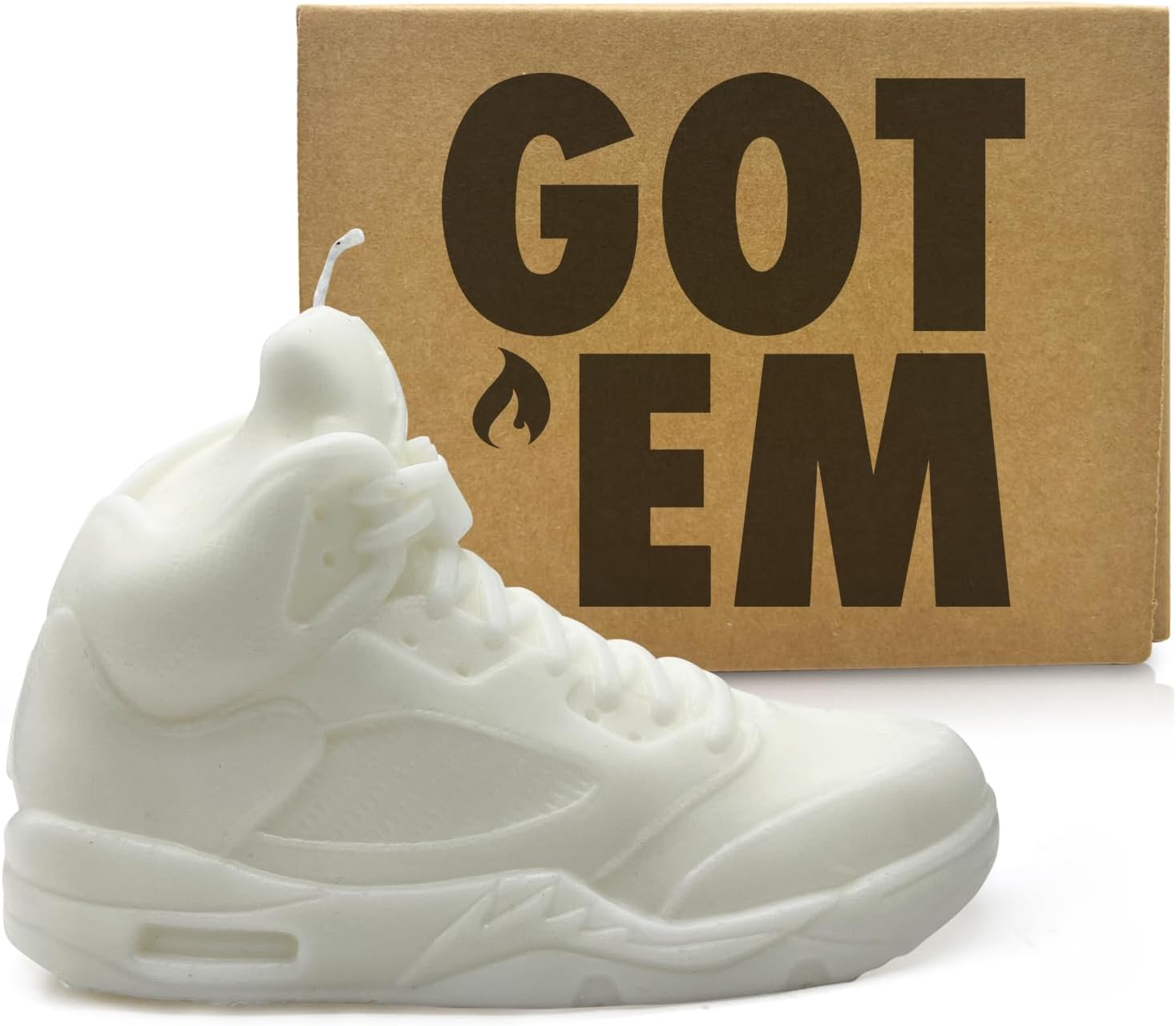 Exclusive Sneaker Shaped Candle - These are hand poured by artisans for remarkable, realistic detail in a fun tribute to the sneaker game. It's an essential gift for anyone who loves sneakers, athletics, working out, or a birthday cake