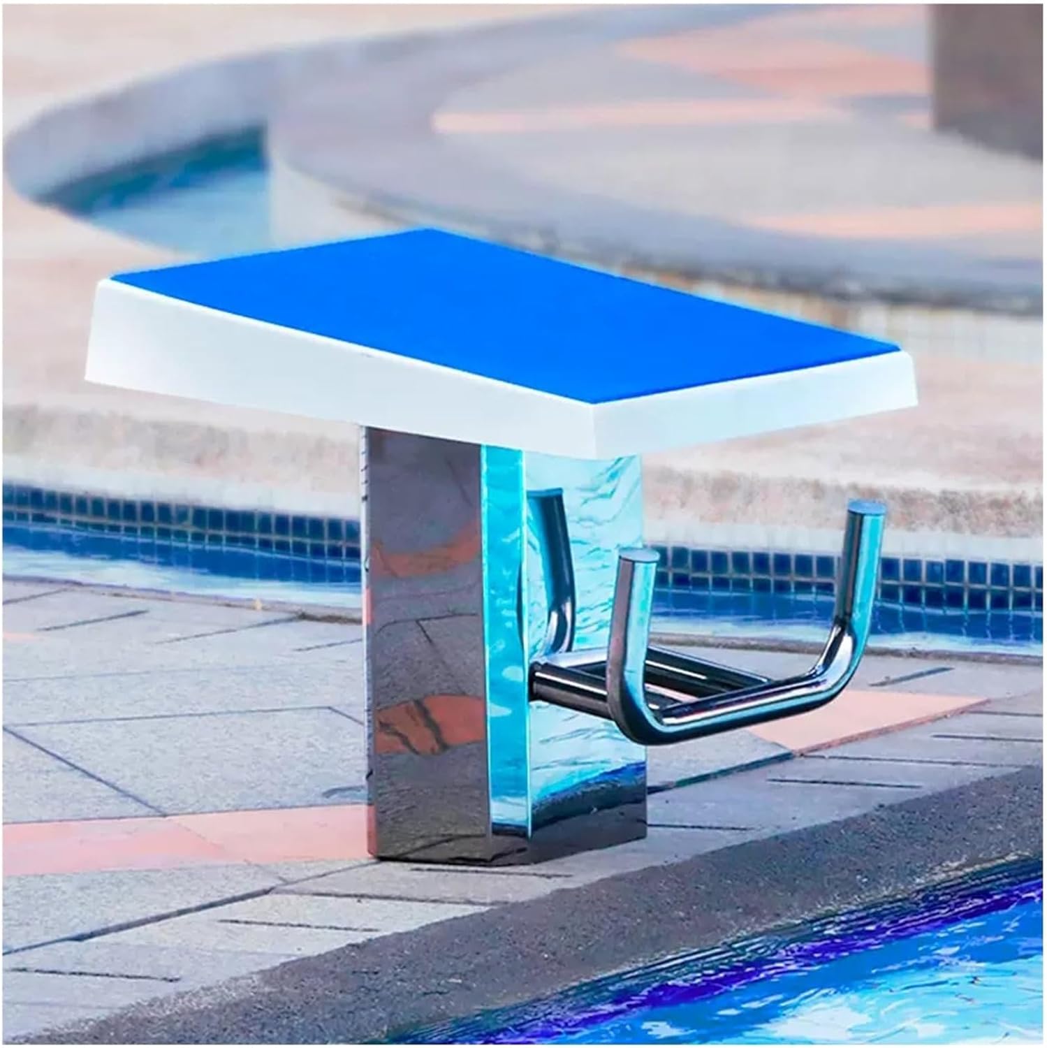 Introducing our premium swimming pool diving platform, expertly crafted from durable 304 stainless steel to ensure longevity and resistance to fading, cracking, and other signs of wear. Designed with a one-piece structure, this diving platform eliminates the need for assembly, making it exceptionally user-friendly and reliable for repeated use in any swimming pool setting.With its non-slip resin surface, the diving platform provides optimal safety and grip, allowing divers to focus on their performance without worrying about slipping. The generous take-off panel dimensions of 740x560mm create a spacious launch area, while the 400mm departure height and 9° angle enhance the diving experience, making it suitable for both novice and experienced divers.The innovative five-speed kick-off configuration allows users to adjust the position of the kick-starting device according to their individual needs, promoting personalized training and skill development. Measuring 50x50x40cm (19.7x19.7x15.7in), this platform is compact yet sturdy, fitting seamlessly into various pool environments.Installation is straightforward and hassle-free. Simply choose your desired location, mark the spots, drill holes, insert the expansion screws, and tighten for a secure setup. Our package includes one springboard and screws for your convenience.For optimal performance, it's recommended to periodically check and retighten the nuts to maintain stability during use. Elevate your diving experience with our reliable and versatile swimming pool diving platform, designed to enhance your enjoyment and safety in the water.