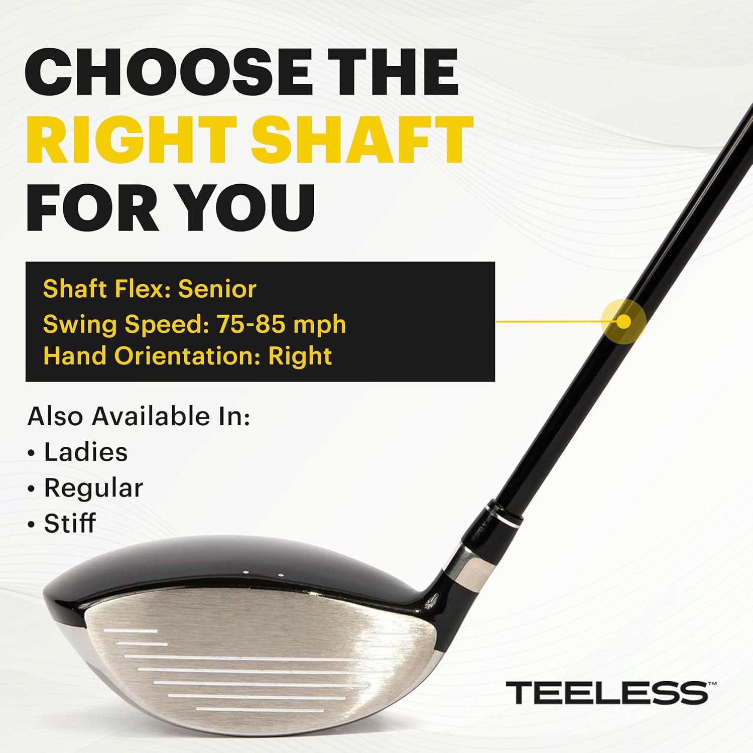 Make every shot count with (T)Less Driver! With its unique ability to turn the ground into your friend, this state-of-the-art club unlocks unparalleled tee-to-turf performance and revolutionizes your golf game. Chunk-Proof Design Hit your drives with the confidence of knowing that you can’t chunk it with (T)Less drivers golf clubs! The sole is designed to allow the club to glide through the toughest grass or rough, even divots so you virtually eliminate any possibility of sticking the club in the ground. Extremely Versatile Take advantage of our (T)Less Driver's dual benefits! Its unique design is optimized to be lightweight and easy to swing, allowing golfers to generate more clubhead speed and power through the ball. Make room in your golf bags by replacing your driver and 3-wood with this! Improved Forgiveness New to the game? Inconsistent ball striking? Worry no more! Our left & right handed golf driver is designed with forgiveness in mind. It features a larger sweet spot with a low-and-back center of gravity(CG) that reduces the negative effects of off-center hits. Higher Launch Angle Achieve optimal launch angles and ball flight with our driver’s precision-engineered loft and face angle! It is designed for one thing: to maximize your distance and accuracy. Choose Your Flex Crafted with the utmost care and attention to detail, the (T)Less Drive Flex is a top-quality club that’s built to last. With a range of 13-degree flex options to choose from, you can tailor your club selection to suit your swing speed and preferences: Stiff Flex Regular Flex Ladies Flex Senior Flex Our drivers are available for both right-handed and left-handed golf players! Join The Club Experience golf made simple with GoGolf365! Our approach helps you enhance your skills while having fun. From our beginner-friendly equipment to our premium instructors, we’re committed to providing the best experience for all levels of players. Hit a flawless shot every time