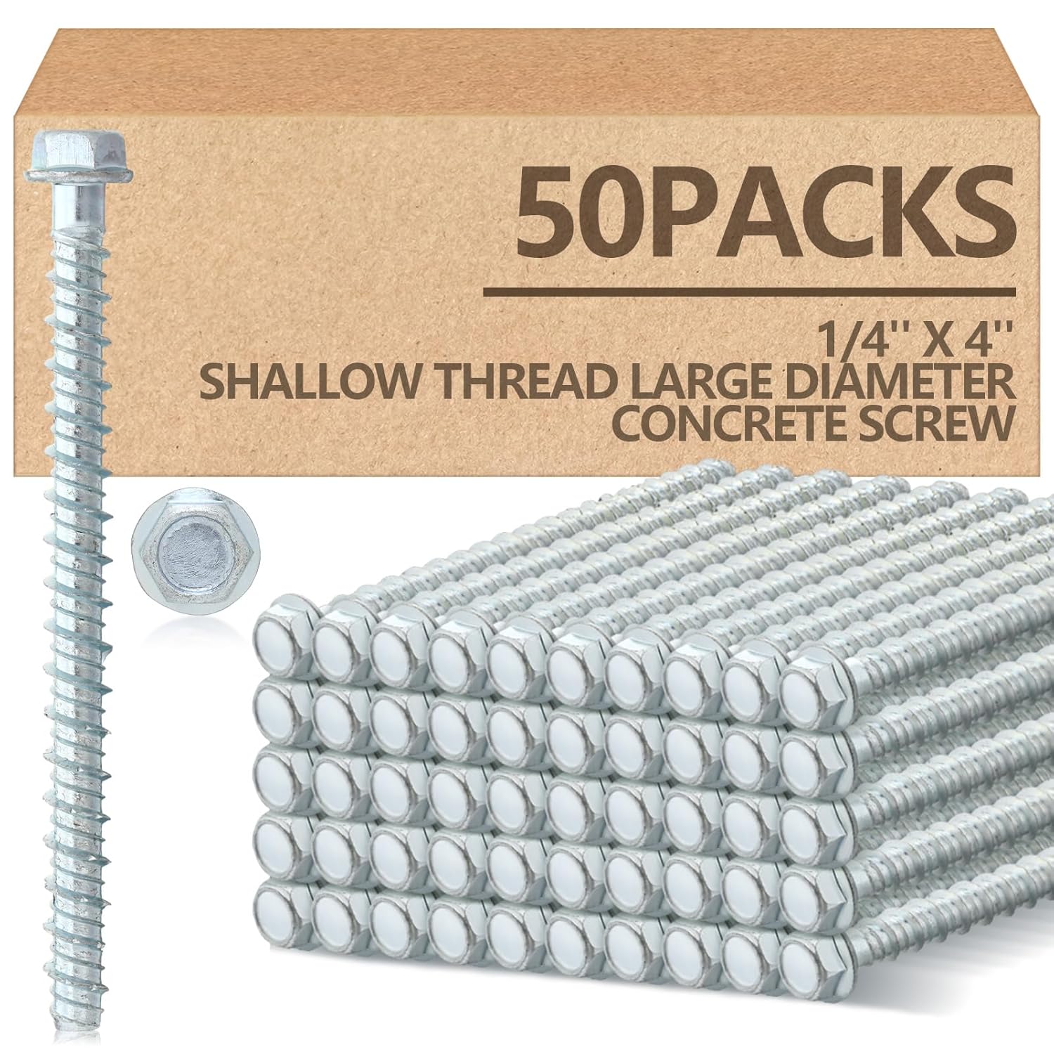 Features: Designed with a serrated hexagon washer head, these screws offer not only functionality but also an aesthetic bonus. This design prevents them from falling out, ensure long-term stable and firm fixing effect Installation method: First use 1/2 hammer drill to open the hole, and then directly use the wall anchor installation, suitable for DIY users and professional construction workers Specifications: Material: galvanized steel Color: sliver Size: about 1/2inch x 3inch Package includes: 40 x Concrete screws Notes: Manual measurement, please allow slight errors on size. The color may exist a slight difference due to different screen displays.