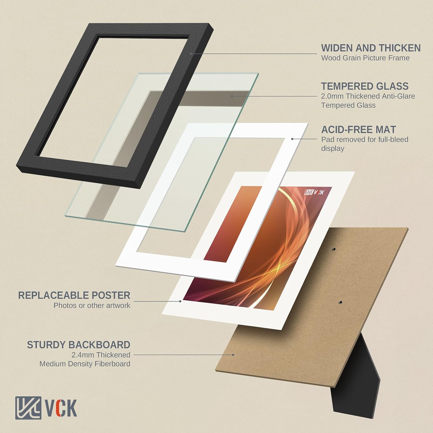 | Included Components | patented spin-lock system, dual hanging hooks, HD tempered glass, 5 frames |