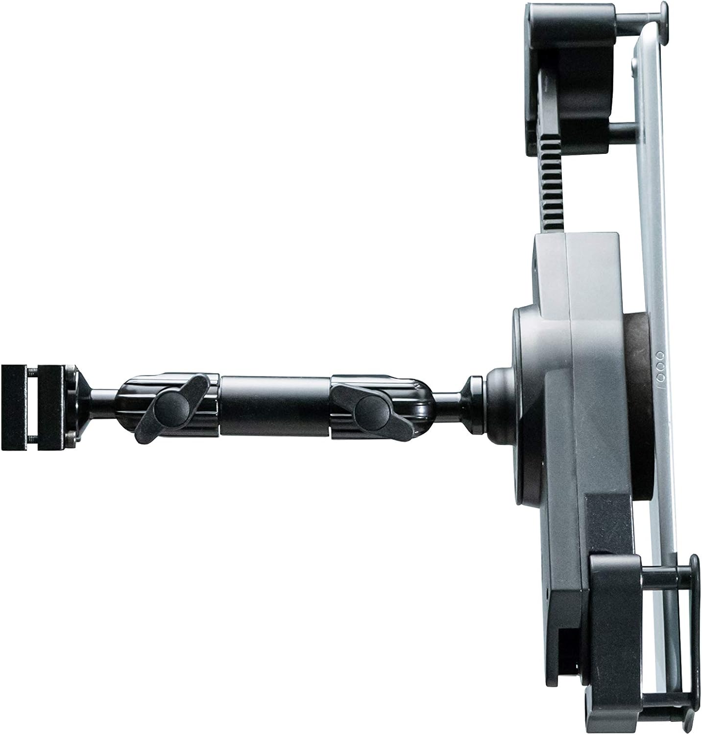 Style:Non-Security Your backseat passengers stay entertained with this flexible car seat headrest mount for tablets. The powerful metal arm is equipped with two ball socket joints for expansive angle adjustment and easy switches between portrait and landscape display orientations. The arm base clamps onto one of your headrest’s support rods, easily tightening or loosening with an included Allen key. This unique clamp allows your tablet to be displayed directly behind the driver or passenger seats or directly between them. The slide-grip tablet holder allows access to all ports, buttons, and headphone jacks, for compatibility with card readers. Features: heavy-duty metal support arm displays tablet behind or between driver and passenger seats 2 powerful ball socket joints with tension locks easy-install onto car seat headrest tablet holder rotates 360 degrees for portrait or landscape orientations compatible with 7-14 inch tablets, including iPad mini, iPad Gen. 5 (2017), iPad Air, iPad Pro 12.9, Galaxy Tab S2, and more Compatible with tablets in their cases up to 1.2 inches in thickness specifications: Dimensions: 10” x 10” x 3.25” Weight: 1.36 lbs. Holder Adjustment range: 8.625 – 15.5 inches Package contents: (1) headrest tablet mount (1) Set of tablet Pad adapters